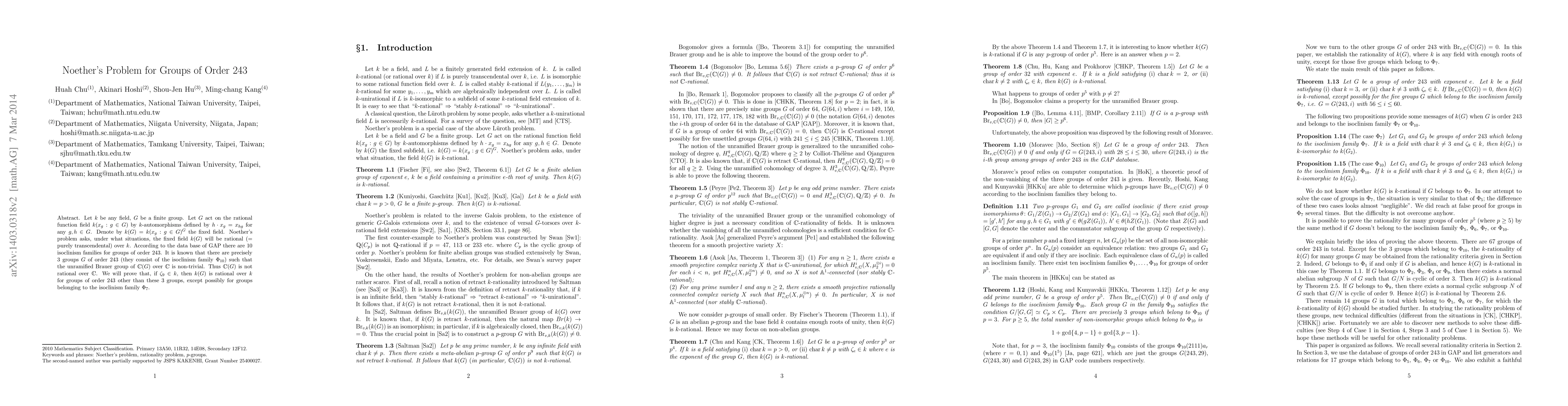 This paper investigates Noether's problem for groups of order 243, determining when the fixed field $k(G)$ is rational over $k$. It finds that for groups not in a specific isoclinism family, $k(G)$ is rational over $k$ if the 9th root of unity $\zeta_9$ is in $k$, except possibly for groups in the isoclinism family $\Phi_7$.
