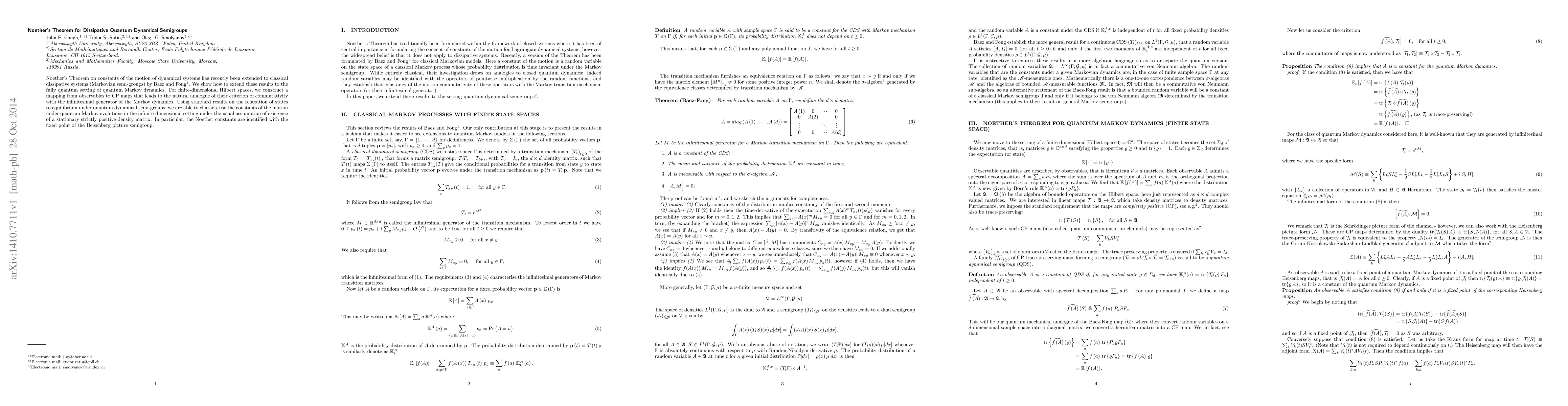 Researchers extend Noether's Theorem to quantum Markov dynamics, showing that constants of motion in dissipative systems can be identified with the fixed point of the Heisenberg picture semigroup, a fundamental concept in quantum mechanics.