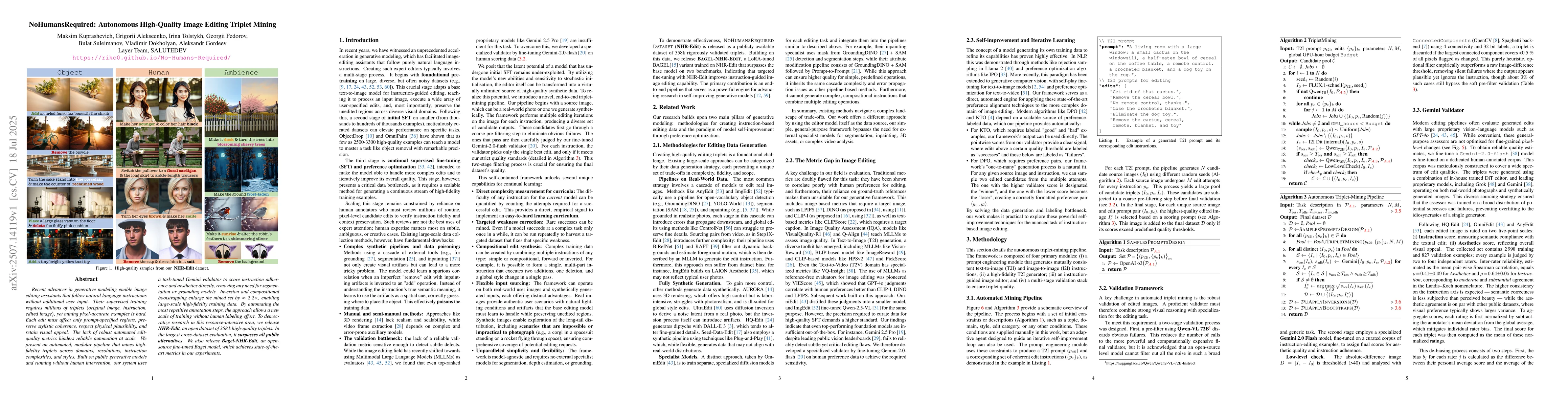Recent advances in generative modeling enable image editing assistants that follow natural language instructions without additional user input. Their supervised training requires millions of triplets: original image, instruction, edited image. Yet mining pixel-accurate examples is hard. Each edit must affect only prompt-specified regions, preserve stylistic coherence, respect physical plausibility, and retain visual appeal. The lack of robust automated edit-quality metrics hinders reliable automation at scale. We present an automated, modular pipeline that mines high-fidelity triplets across domains, resolutions, instruction complexities, and styles. Built on public generative models and running without human intervention, our system uses a task-tuned Gemini validator to score instruction adherence and aesthetics directly, removing any need for segmentation or grounding models. Inversion and compositional bootstrapping enlarge the mined set by approximately 2.2x, enabling large-scale high-fidelity training data. By automating the most repetitive annotation steps, the approach allows a new scale of training without human labeling effort. To democratize research in this resource-intensive area, we release NHR-Edit: an open dataset of 358k high-quality triplets. In the largest cross-dataset evaluation, it surpasses all public alternatives. We also release Bagel-NHR-Edit, an open-source fine-tuned Bagel model, which achieves state-of-the-art metrics in our experiments.