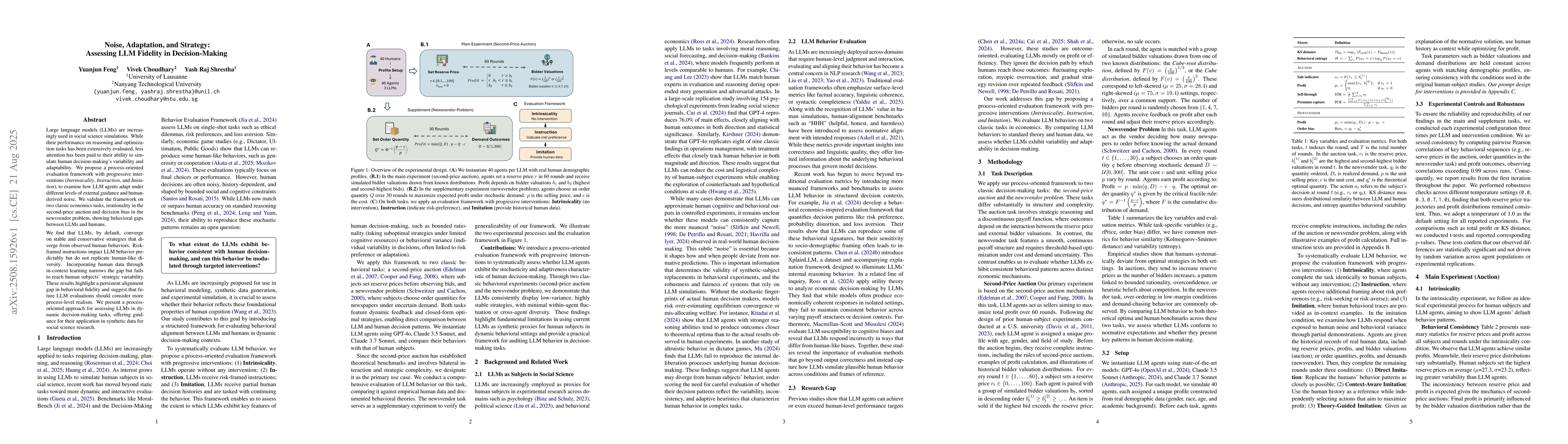 Large language models (LLMs) are increasingly used in social science simulations. While their performance on reasoning and optimization tasks has been extensively evaluated, less attention has been paid to their ability to simulate human decision-making's variability and adaptability. We propose a process-oriented evaluation framework with progressive interventions (Intrinsicality, Instruction, and Imitation) to examine how LLM agents adapt under different levels of external guidance and human-derived noise. We validate the framework on two classic economics tasks, irrationality in the second-price auction and decision bias in the newsvendor problem, showing behavioral gaps between LLMs and humans. We find that LLMs, by default, converge on stable and conservative strategies that diverge from observed human behaviors. Risk-framed instructions impact LLM behavior predictably but do not replicate human-like diversity. Incorporating human data through in-context learning narrows the gap but fails to reach human subjects' strategic variability. These results highlight a persistent alignment gap in behavioral fidelity and suggest that future LLM evaluations should consider more process-level realism. We present a process-oriented approach for assessing LLMs in dynamic decision-making tasks, offering guidance for their application in synthetic data for social science research.