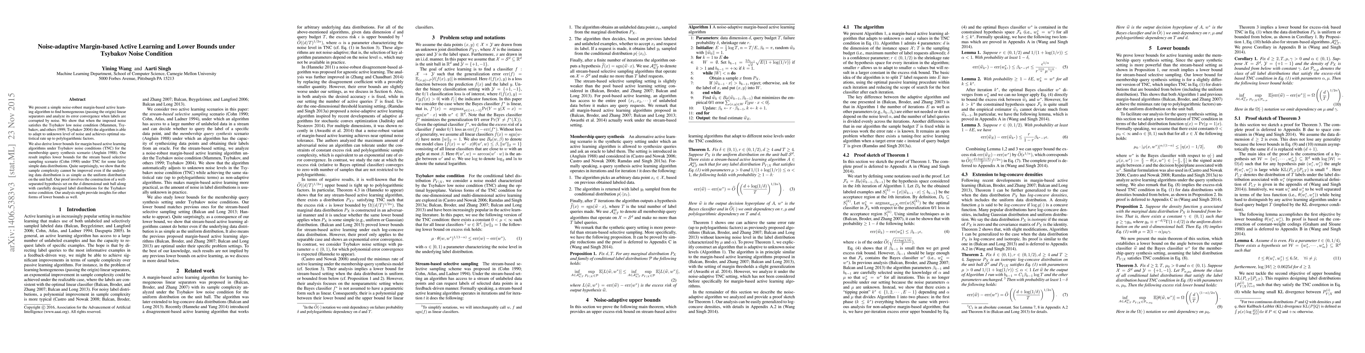This paper introduces a noise-adaptive margin-based active learning algorithm that finds linear separators under Tsybakov noise conditions, achieving optimal statistical convergence rates. It also establishes lower bounds for margin-based active learning under these conditions, showing that even simple data distributions cannot improve sample complexity.