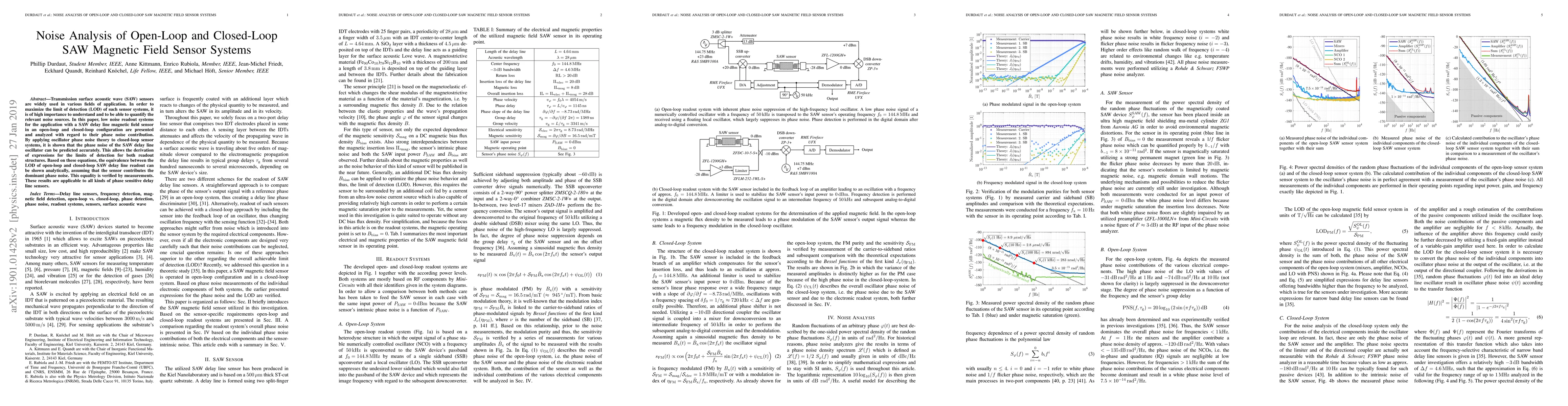 This paper analyzes noise sources in open-loop and closed-loop SAW magnetic field sensors, demonstrating the equivalence of their detection limits through phase noise theory and experimental verification. The study provides expressions for the limits of detection for both configurations, showing that the sensor's phase noise dominates the overall noise.