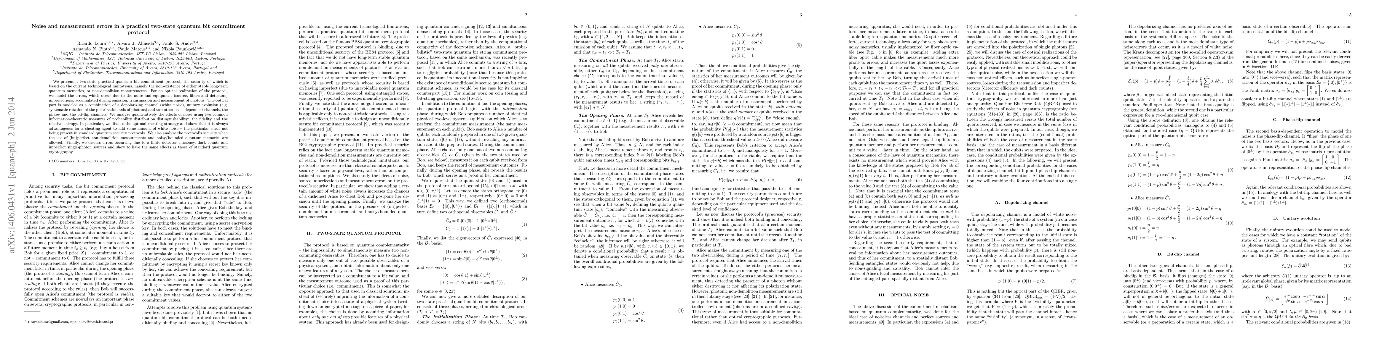 We present a two-state practical quantum bit commitment protocol, the security of which is based on the current technological limitations, namely the nonexistence of either stable long-term quantum memories or nondemolition measurements. For an optical realization of the protocol, we model the errors, which occur due to the noise and equipment (source, fibers, and detectors) imperfections, accumulated during emission, transmission, and measurement of photons. The optical part is modeled as a combination of a depolarizing channel (white noise), unitary evolution (e.g., systematic rotation of the polarization axis of photons), and two other basis-dependent channels, namely the phase- and bit-flip channels. We analyze quantitatively the effects of noise using two common information-theoretic measures of probability distribution distinguishability: the fidelity and the relative entropy. In particular, we discuss the optimal cheating strategy and show that it is always advantageous for a cheating agent to add some amount of white noise - the particular effect not being present in standard quantum security protocols. We also analyze the protocol's security when the use of (im)perfect nondemolition measurements and noisy or bounded quantum memories is allowed. Finally, we discuss errors occurring due to a finite detector efficiency, dark counts, and imperfect single-photon sources, and we show that the effects are the same as those of standard quantum cryptography.