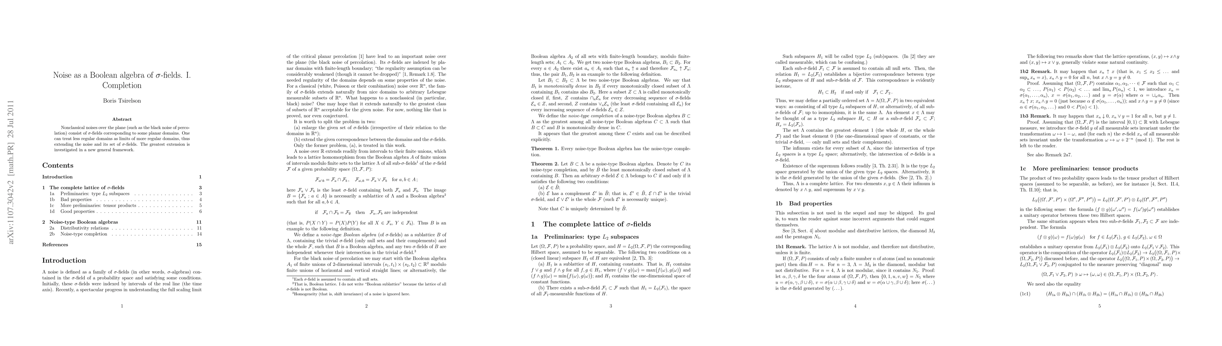 Nonclassical noises over the plane (such as the black noise of percolation) consist of sigma-fields corresponding to some planar domains. One can treat less regular domains as limits of more regular domains, thus extending the noise and its set of sigma-fields. The greatest extension is investigated in a new general framework.