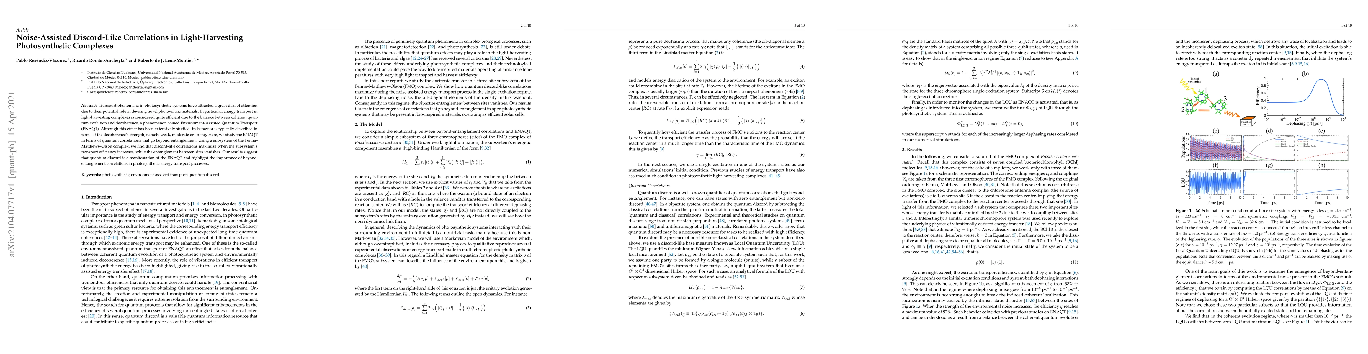 This paper investigates how quantum correlations beyond entanglement, specifically discord-like correlations, enhance transport efficiency in photosynthetic light-harvesting complexes, even when entanglement diminishes. It suggests that discord is crucial for understanding Environment-Assisted Quantum Transport (ENAQT) in these systems.