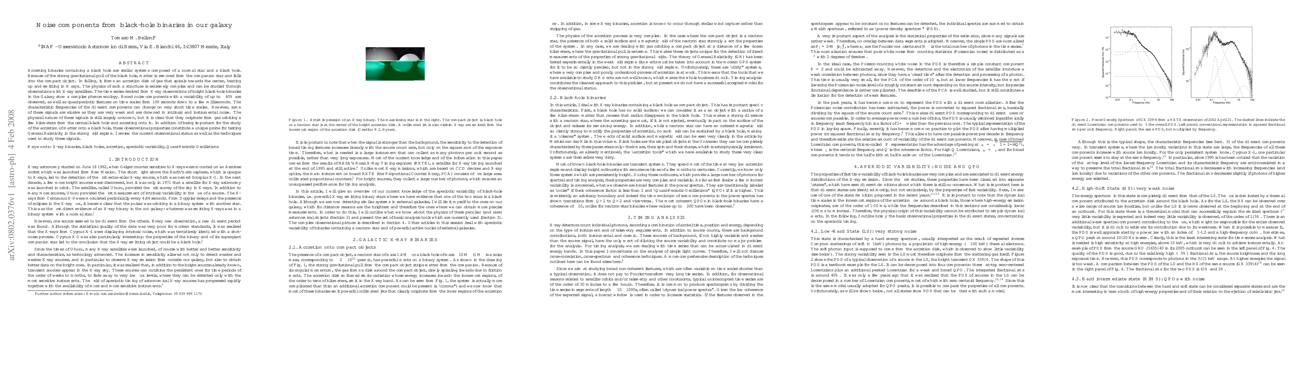 Accreting binaries containing a black hole are stellar systems composed of a normal star and a black hole. Because of the strong gravitational pull of the black hole, matter is removed from the companion star and falls into the compact ob ject. In falling, it forms an accretion disk of gas that spirals towards the center, heating up and emitting in X rays. The physics of such a structure is extremely complex and can be studied through observations with X-ray satellites. The time series derived from X-ray observations of bright black-hole binaries in the Galaxy show a complex phenomenology. Broad noise components with a variability of up to 40% are observed, as well as quasi-periodic features on time scales from 100 seconds down to a few milliseconds. The characteristic frequencies of the different components can change on very short time scales. However, some of these signals are elusive as they are very weak and are drowned in intrinsic and instrumental noise. The physical nature of these signals is still largely unknown, but it is clear that they originate from gas orbiting a few kilometers from the central black hole and accreting onto it. In addition of being important for the study of the accretion of matter onto a black hole, these observational properties constitute a unique probe for testing General Relativity in the strong field regime. I review the current observational status as well as the techniques used to study these signals.