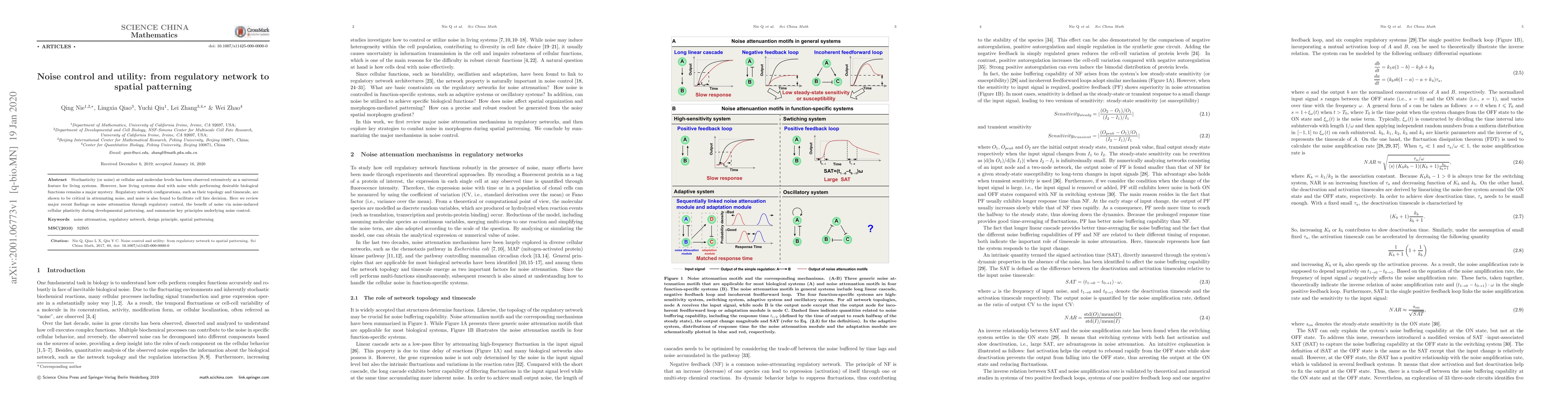 This paper reviews how regulatory networks manage cellular noise to perform biological functions, highlighting noise attenuation strategies and the role of noise in facilitating cellular plasticity during developmental patterning. It summarizes key principles underlying the control of noise in living systems.