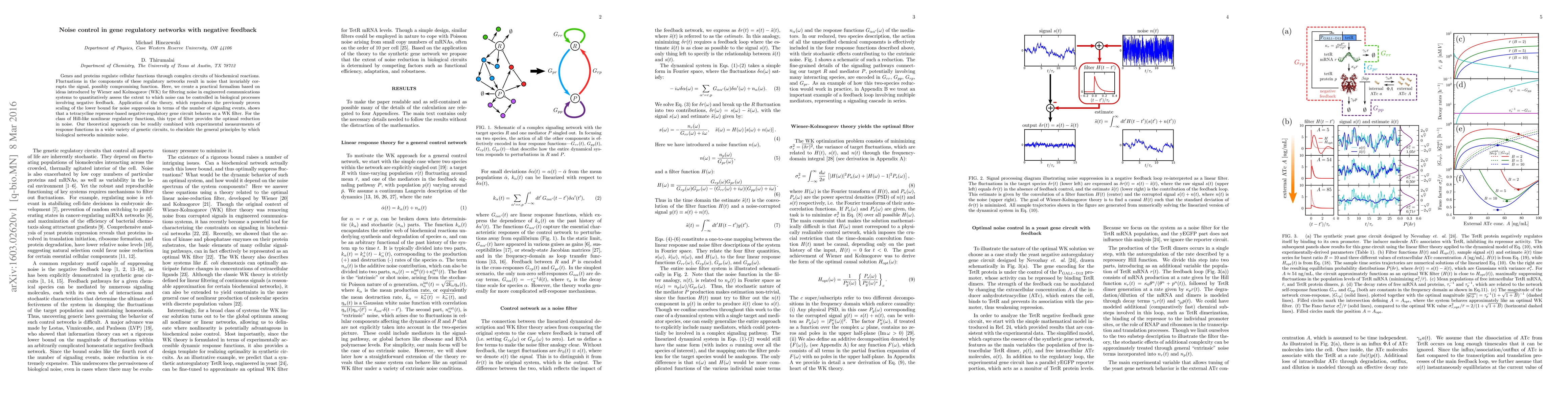 This paper develops a formalism inspired by Wiener and Kolmogorov to assess noise control in gene regulatory networks, particularly those with negative feedback. It demonstrates that a tetracycline repressor-based circuit functions as a Wiener-Kolmogorov filter, providing optimal noise reduction for Hill-like nonlinear regulatory functions.
