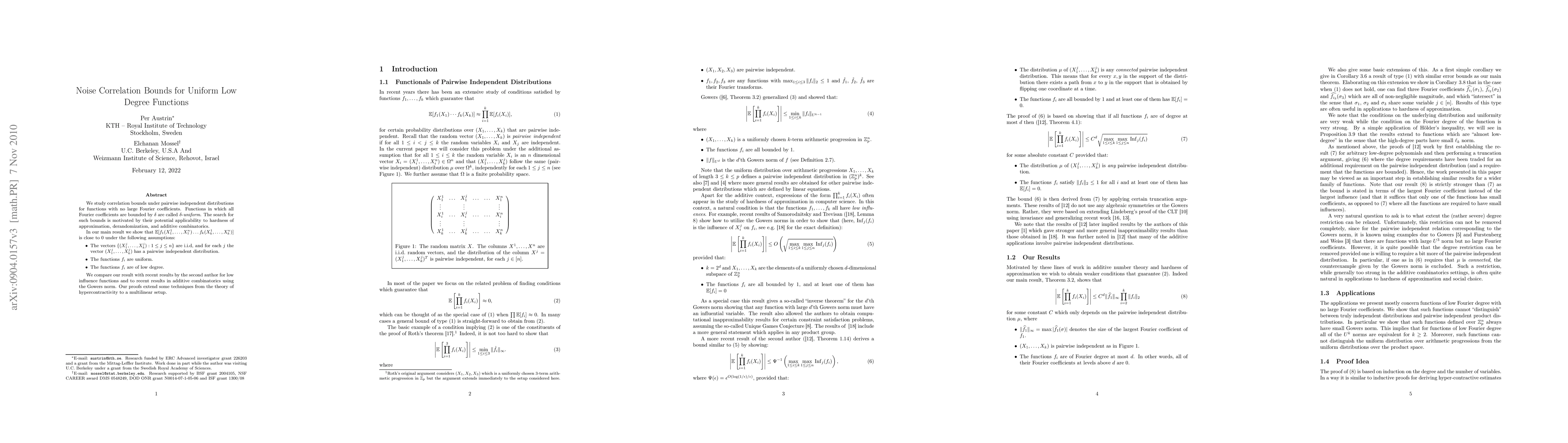 We study correlation bounds under pairwise independent distributions for functions with no large Fourier coefficients. Functions in which all Fourier coefficients are bounded by $\delta$ are called $\delta$-{\em uniform}. The search for such bounds is motivated by their potential applicability to hardness of approximation, derandomization, and additive combinatorics. In our main result we show that $\E[f_1(X_1^1,...,X_1^n) ... f_k(X_k^1,...,X_k^n)]$ is close to 0 under the following assumptions: 1. The vectors $\{(X_1^j,...,X_k^j) : 1 \leq j \leq n\}$ are i.i.d, and for each $j$ the vector $(X_1^j,...,X_k^j)$ has a pairwise independent distribution. 2. The functions $f_i$ are uniform. 3. The functions $f_i$ are of low degree. We compare our result with recent results by the second author for low influence functions and to recent results in additive combinatorics using the Gowers norm. Our proofs extend some techniques from the theory of hypercontractivity to a multilinear setup.
