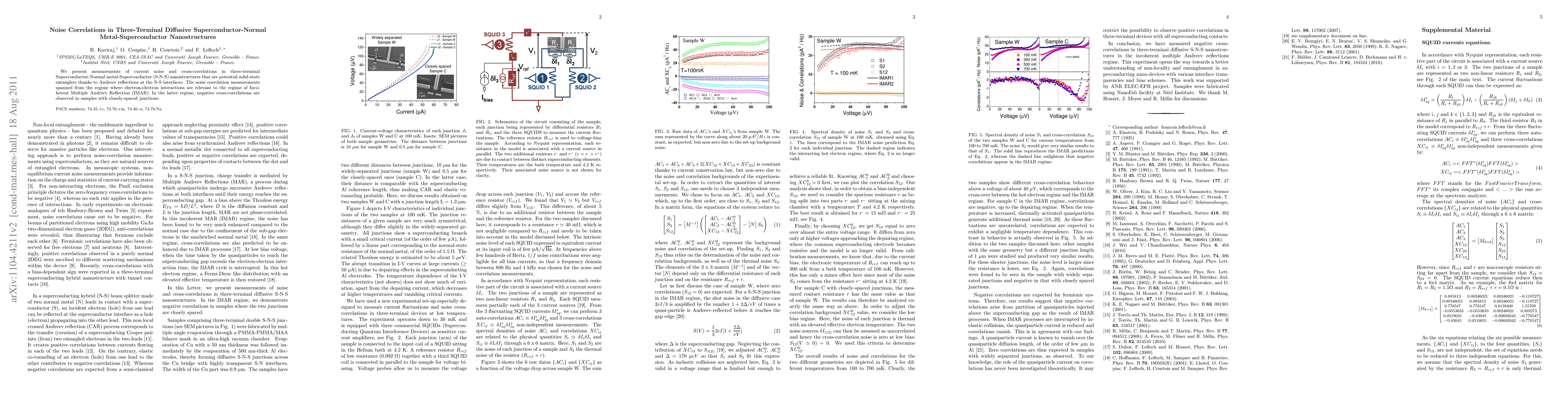This paper investigates current noise and cross-correlations in three-terminal S-N-S nanostructures, revealing negative cross-correlations in the incoherent regime due to Andreev reflections, suggesting potential for solid-state entanglers. The study spans regimes from electron-electron interactions to Incoherent Multiple Andreev Reflection.