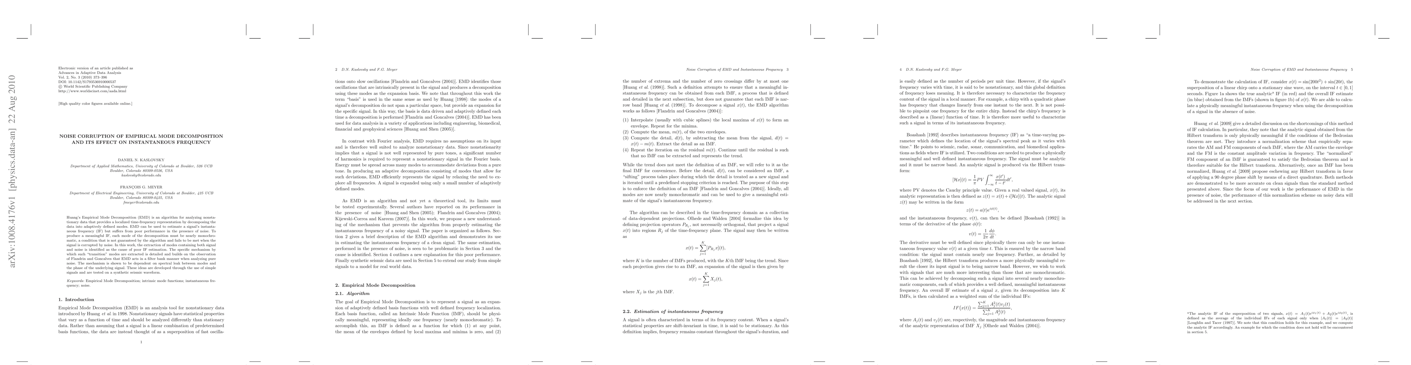 Huang's Empirical Mode Decomposition (EMD) is an algorithm for analyzing nonstationary data that provides a localized time-frequency representation by decomposing the data into adaptively defined modes. EMD can be used to estimate a signal's instantaneous frequency (IF) but suffers from poor performance in the presence of noise. To produce a meaningful IF, each mode of the decomposition must be nearly monochromatic, a condition that is not guaranteed by the algorithm and fails to be met when the signal is corrupted by noise. In this work, the extraction of modes containing both signal and noise is identified as the cause of poor IF estimation. The specific mechanism by which such "transition" modes are extracted is detailed and builds on the observation of Flandrin and Goncalves that EMD acts in a filter bank manner when analyzing pure noise. The mechanism is shown to be dependent on spectral leak between modes and the phase of the underlying signal. These ideas are developed through the use of simple signals and are tested on a synthetic seismic waveform.