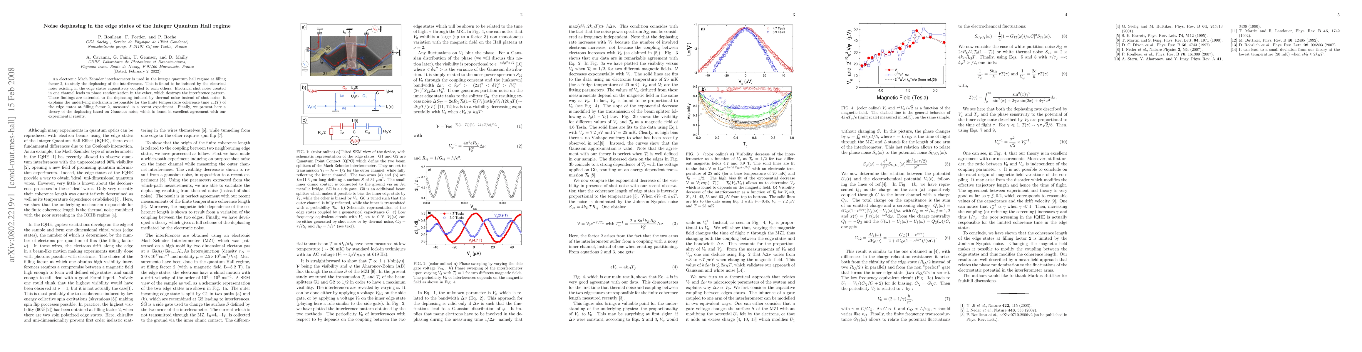 This paper investigates noise-induced dephasing in the edge states of the Integer Quantum Hall regime using an electronic Mach-Zehnder interferometer at filling factor 2. It finds that electrical shot noise from one channel causes phase randomization in the other, disrupting interference patterns, and extends this to thermal noise, explaining the temperature dependence of coherence time. A Gaussian noise theory aligns well with experimental observations.