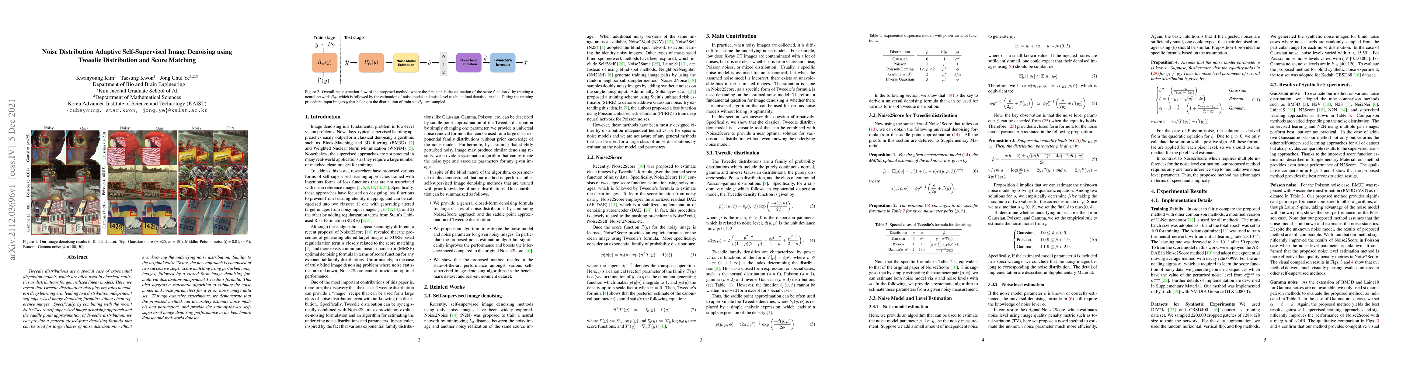 This paper proposes a novel self-supervised image denoising method that leverages Tweedie distributions and score matching, leading to a distribution-independent denoising formula. The method provides state-of-the-art performance without requiring clean reference images, and it can accurately estimate noise models and parameters for various noise distributions.