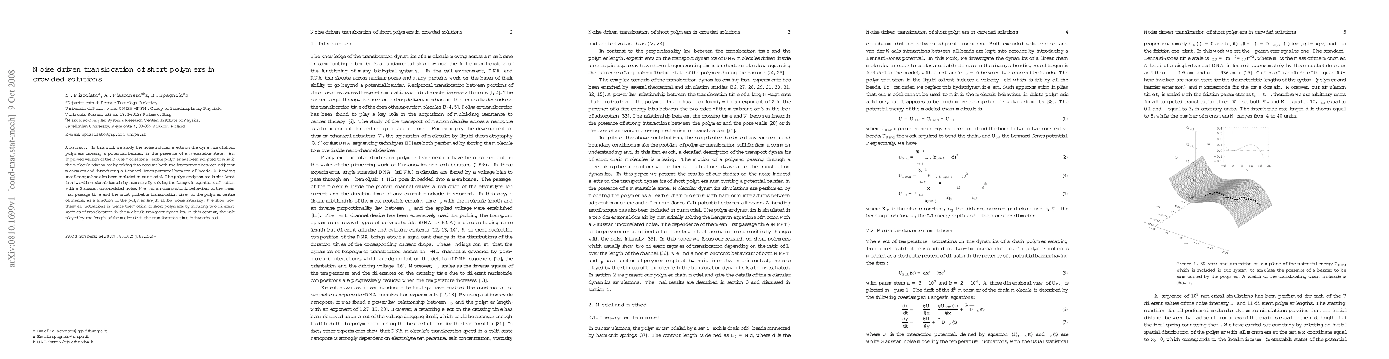 In this work we study the noise induced effects on the dynamics of short polymers crossing a potential barrier, in the presence of a metastable state. An improved version of the Rouse model for a flexible polymer has been adopted to mimic the molecular dynamics by taking into account both the interactions between adjacent monomers and introducing a Lennard-Jones potential between all beads. A bending recoil torque has also been included in our model. The polymer dynamics is simulated in a two-dimensional domain by numerically solving the Langevin equations of motion with a Gaussian uncorrelated noise. We find a nonmonotonic behaviour of the mean first passage time and the most probable translocation time, of the polymer centre of inertia, as a function of the polymer length at low noise intensity. We show how thermal fluctuations influence the motion of short polymers, by inducing two different regimes of translocation in the molecule transport dynamics. In this context, the role played by the length of the molecule in the translocation time is investigated.