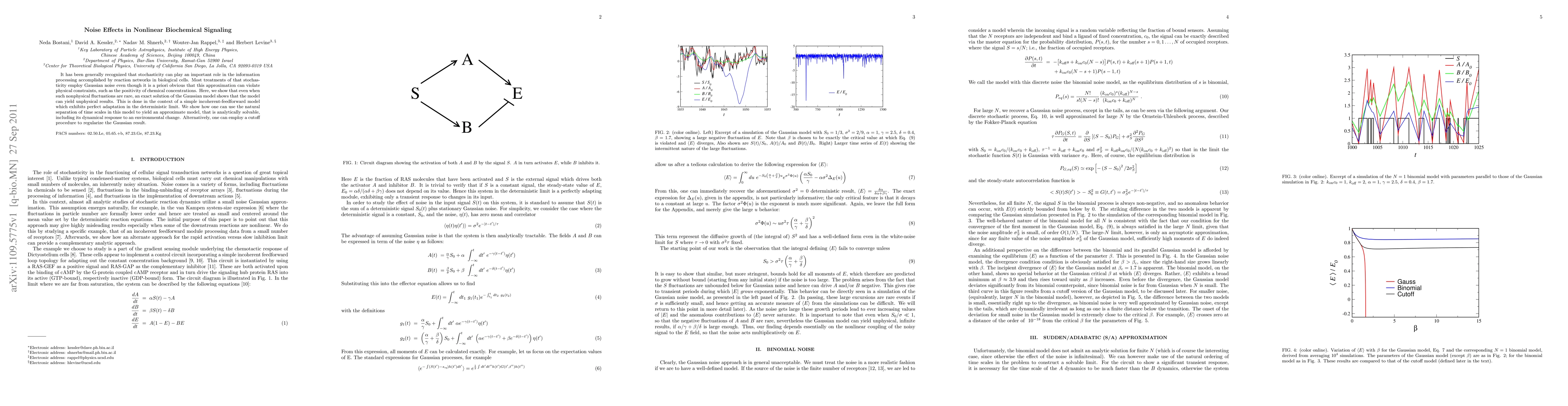 It has been generally recognized that stochasticity can play an important role in the information processing accomplished by reaction networks in biological cells. Most treatments of that stochasticity employ Gaussian noise even though it is a priori obvious that this approximation can violate physical constraints, such as the positivity of chemical concentrations. Here, we show that even when such nonphysical fluctuations are rare, an exact solution of the Gaussian model shows that the model can yield unphysical results. This is done in the context of a simple incoherent-feedforward model which exhibits perfect adaptation in the deterministic limit. We show how one can use the natural separation of time scales in this model to yield an approximate model, that is analytically solvable, including its dynamical response to an environmental change. Alternatively, one can employ a cutoff procedure to regularize the Gaussian result.