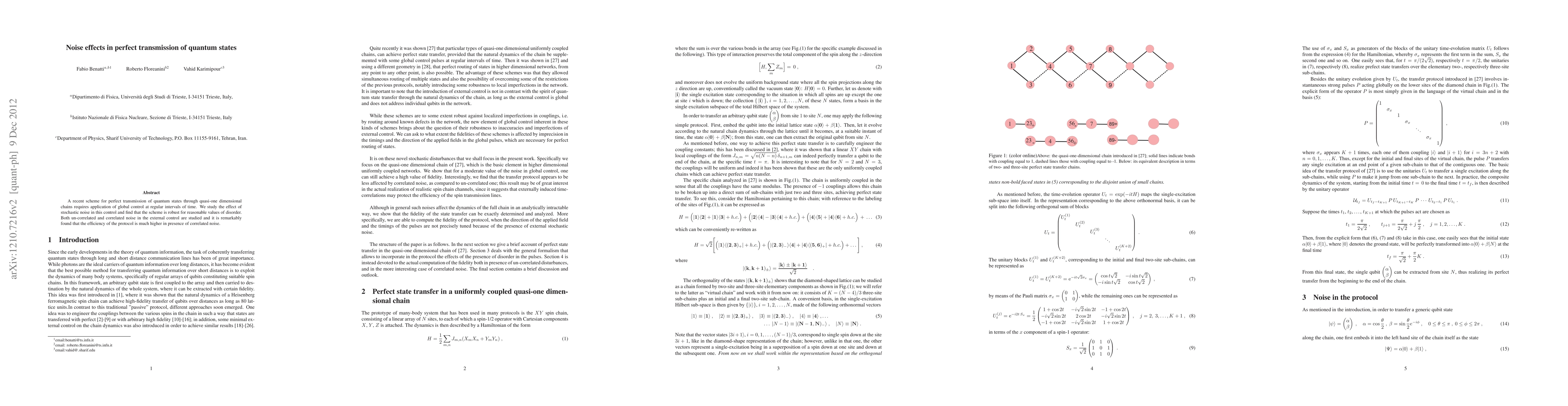 A recent scheme for perfect transmission of quantum states through quasi-one dimensional chains requires application of global control at regular intervals of time. We study the effect of stochastic noise in this control and find that the scheme is robust for reasonable values of disorder. Both un-correlated and correlated noise in the external control are studied and it is remarkably found that the efficiency of the protocol is much higher in presence of correlated noise.