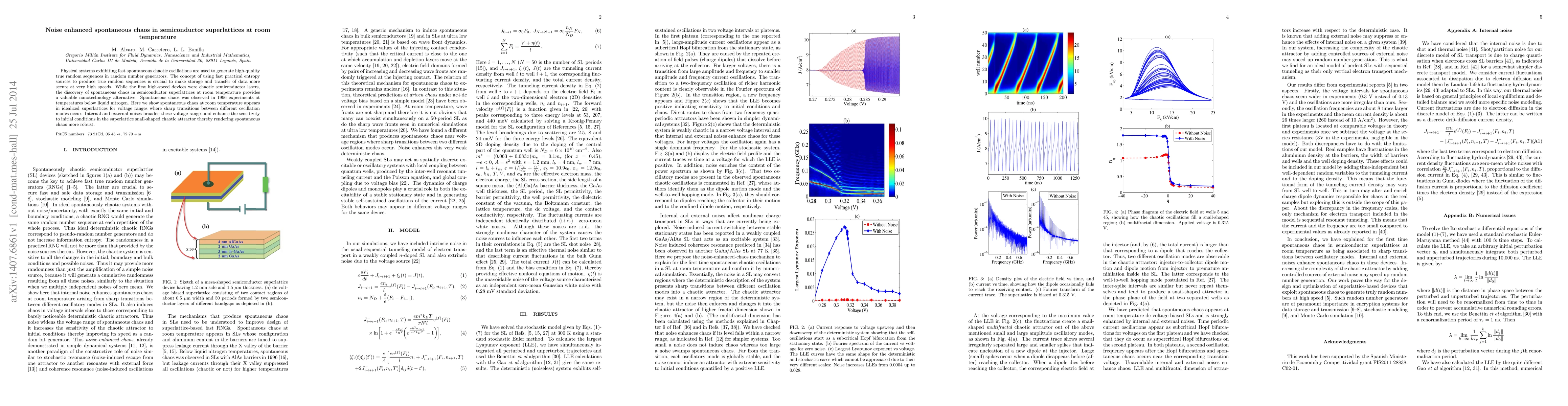 This paper demonstrates that semiconductor superlattices can exhibit spontaneous chaos at room temperature, enhancing true random sequence generation. Noise broadens voltage ranges for oscillation mode transitions, improving the robustness of the chaotic behavior and providing a practical nanotechnology alternative for high-speed secure data storage and transfer.