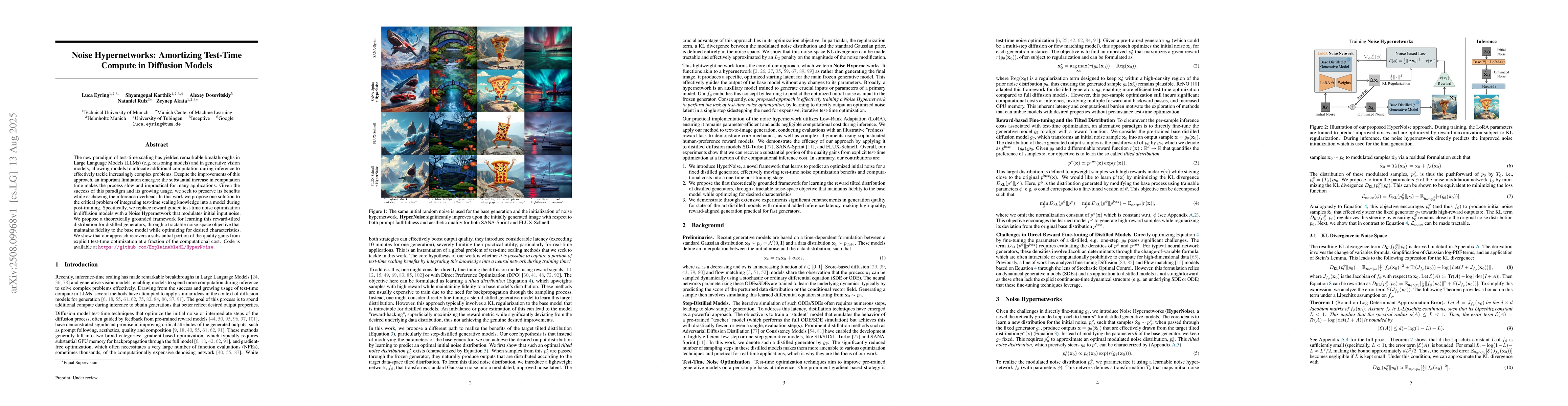 The new paradigm of test-time scaling has yielded remarkable breakthroughs in Large Language Models (LLMs) (e.g. reasoning models) and in generative vision models, allowing models to allocate additional computation during inference to effectively tackle increasingly complex problems. Despite the improvements of this approach, an important limitation emerges: the substantial increase in computation time makes the process slow and impractical for many applications. Given the success of this paradigm and its growing usage, we seek to preserve its benefits while eschewing the inference overhead. In this work we propose one solution to the critical problem of integrating test-time scaling knowledge into a model during post-training. Specifically, we replace reward guided test-time noise optimization in diffusion models with a Noise Hypernetwork that modulates initial input noise. We propose a theoretically grounded framework for learning this reward-tilted distribution for distilled generators, through a tractable noise-space objective that maintains fidelity to the base model while optimizing for desired characteristics. We show that our approach recovers a substantial portion of the quality gains from explicit test-time optimization at a fraction of the computational cost. Code is available at https://github.com/ExplainableML/HyperNoise