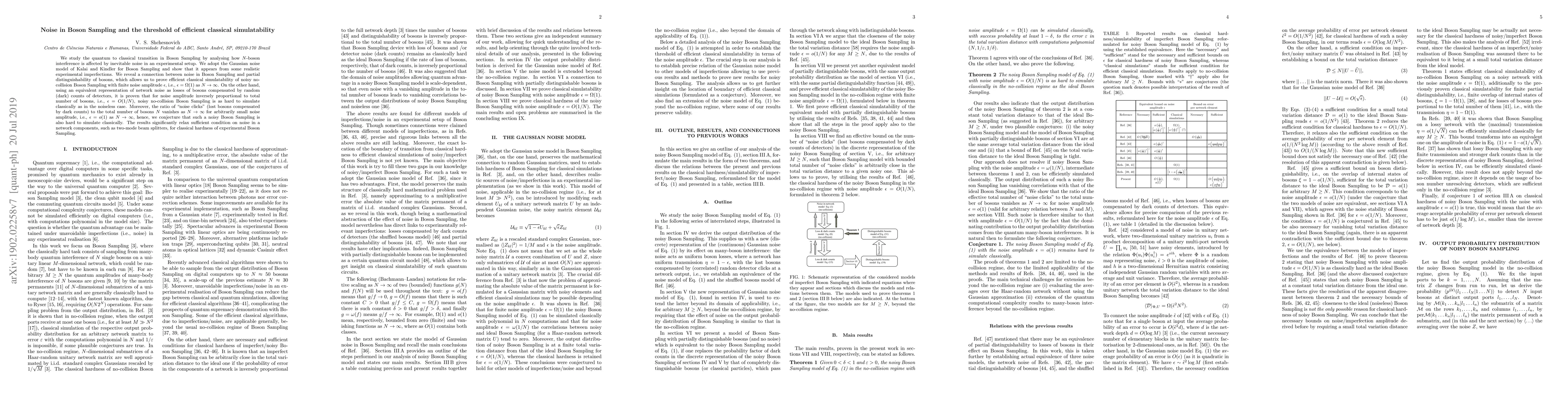 A study on Boson Sampling with noise reveals a threshold for efficient classical simulatability, showing that very small amounts of noise can make the problem as hard to solve classically as the noiseless case.