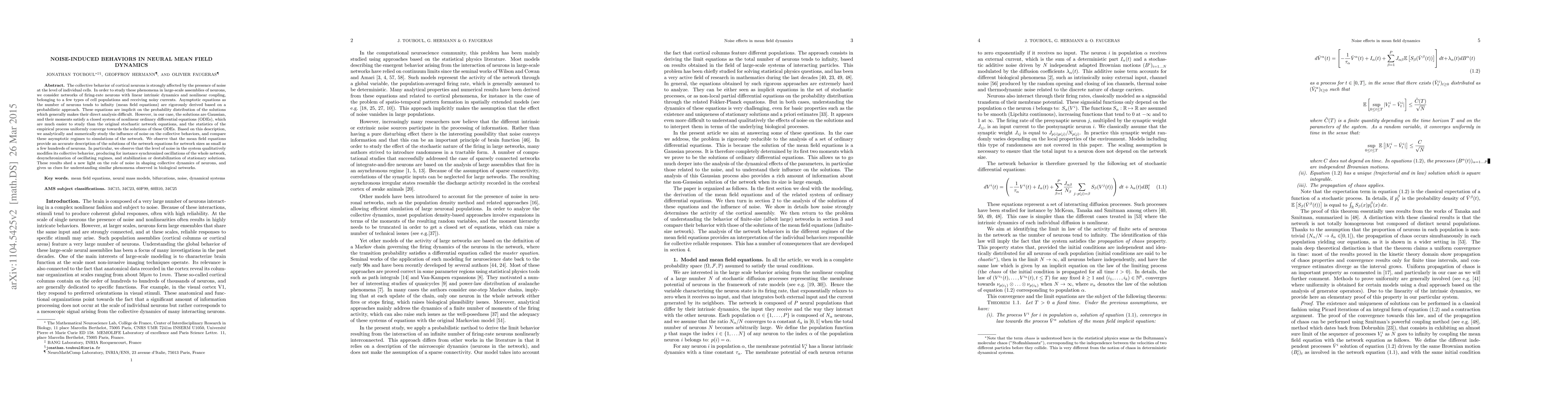 This paper rigorously derives mean field equations for large-scale neural networks with noise-induced dynamics, showing that these equations accurately describe network behavior even for small sizes. It reveals how noise influences collective behaviors such as synchronization, desynchronization, and stability of neural oscillations.