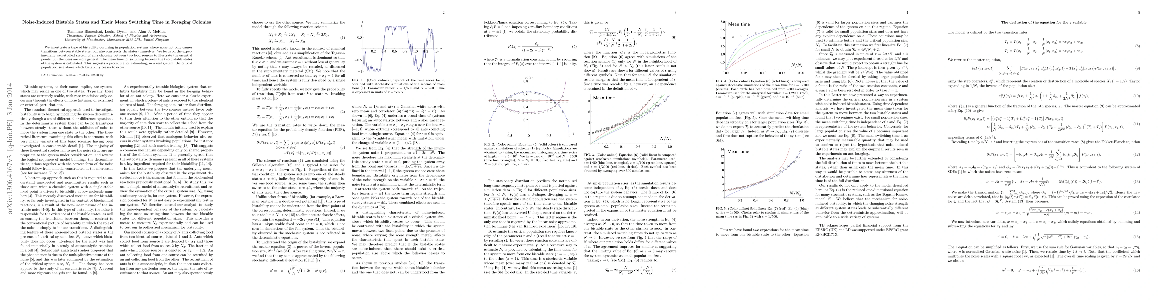 Researchers studied how noise affects the behavior of ants choosing between food sources, finding that it can create stable states that switch over a mean time period. This discovery provides insight into when bistability stops occurring in real systems.