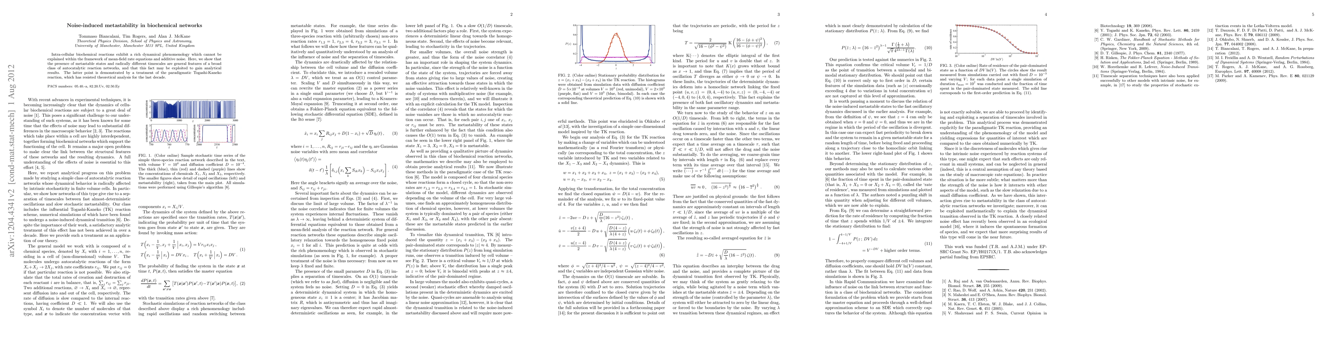 Intra-cellular biochemical reactions exhibit a rich dynamical phenomenology which cannot be explained within the framework of mean-field rate equations and additive noise. Here, we show that the presence of metastable states and radically different timescales are general features of a broad class of autocatalyic reaction networks, and moreover, that this fact may be exploited to gain analytical results. The latter point is demonstrated by a treatment of the paradigmatic Togashi-Kaneko reaction, which has resisted theoretical analysis for the last decade.