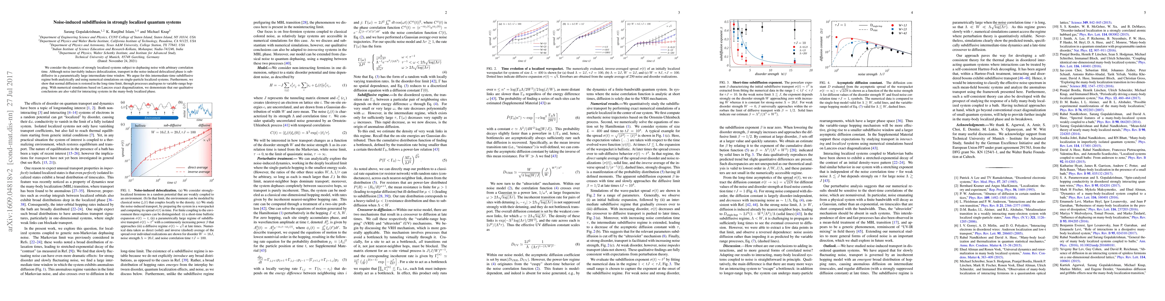 Researchers found that adding noise to a system can cause it to behave subdiffusively for a brief time, before returning to normal diffusion behavior in the long run. This phenomenon occurs even in systems that are normally localized.