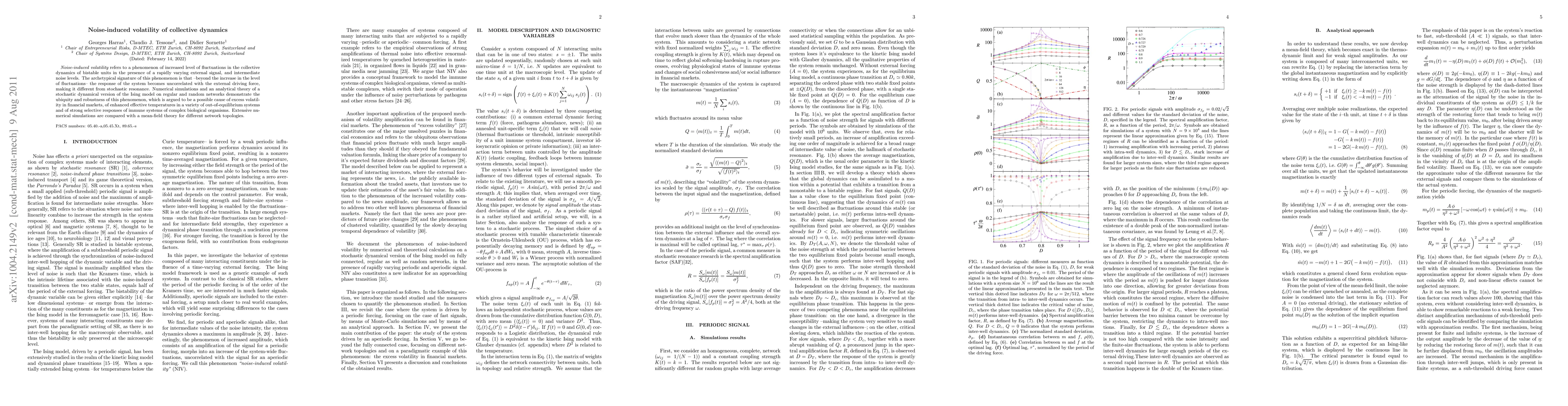 "Noise-induced volatility" refers to a phenomenon of increased level of fluctuations in the collective dynamics of bistable units in the presence of a rapidly varying external signal, and intermediate noise levels. The archetypical signature of this phenomenon is that --beyond the increase in the level of fluctuations-- the response of the system becomes uncorrelated with the external driving force, making it different from stochastic resonance. Numerical simulations and an analytical theory of a stochastic dynamical version of the Ising model on regular and random networks demonstrate the ubiquity and robustness of this phenomenon, which is argued to be a possible cause of excess volatility in financial markets, of enhanced effective temperatures in a variety of out-of-equilibrium systems and of strong selective responses of immune systems of complex biological organisms. Extensive numerical simulations are compared with a mean-field theory for different network topologies.