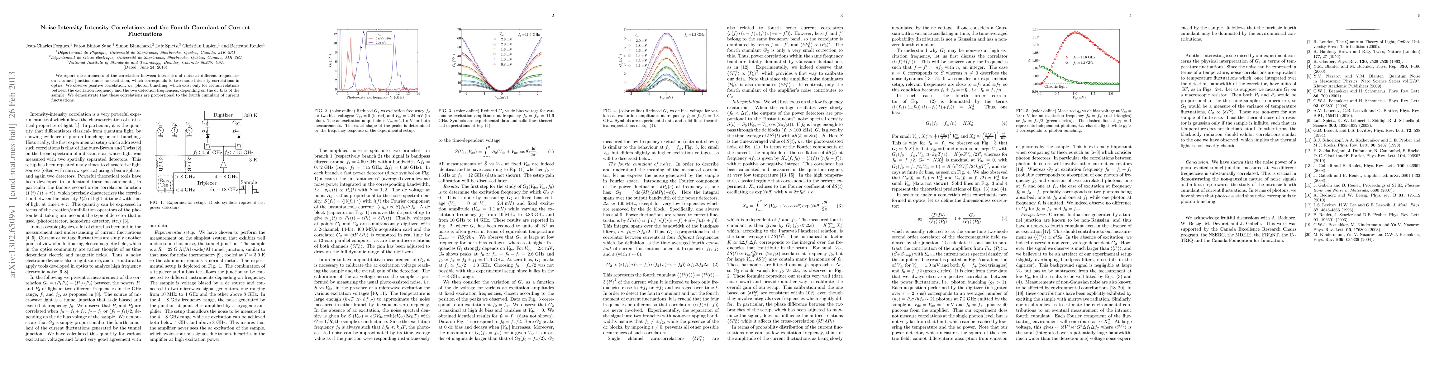 This study investigates the correlation between noise intensities at different frequencies in an ac-excited tunnel junction, revealing positive correlations (photon bunching) under specific frequency relations and dc bias conditions. The observed correlations are shown to be proportional to the fourth cumulant of current fluctuations.