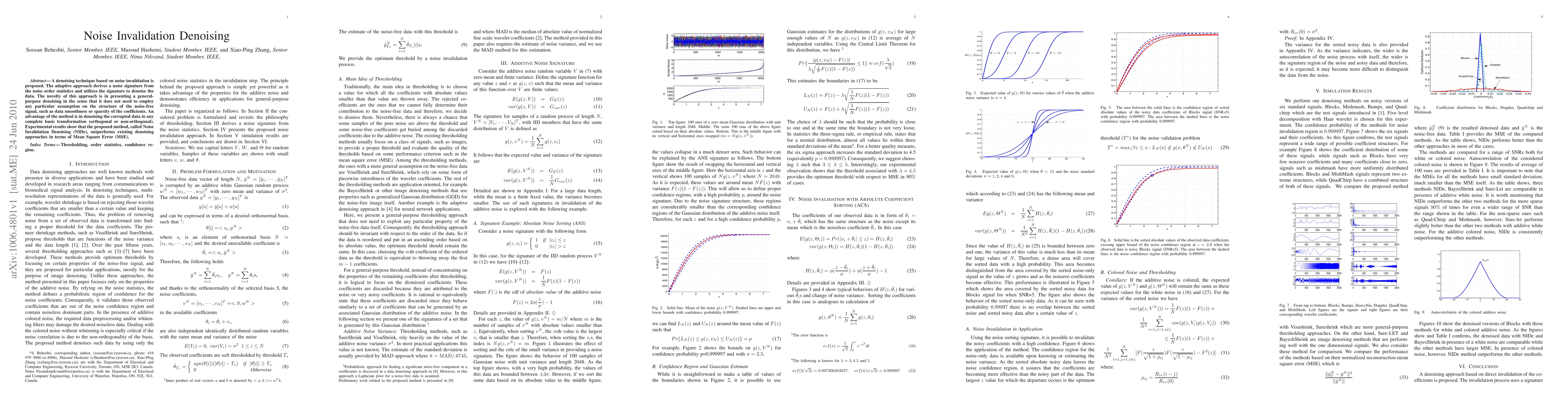 A denoising technique based on noise invalidation is proposed. The adaptive approach derives a noise signature from the noise order statistics and utilizes the signature to denoise the data. The novelty of this approach is in presenting a general-purpose denoising in the sense that it does not need to employ any particular assumption on the structure of the noise-free signal, such as data smoothness or sparsity of the coefficients. An advantage of the method is in denoising the corrupted data in any complete basis transformation (orthogonal or non-orthogonal). Experimental results show that the proposed method, called Noise Invalidation Denoising (NIDe), outperforms existing denoising approaches in terms of Mean Square Error (MSE).