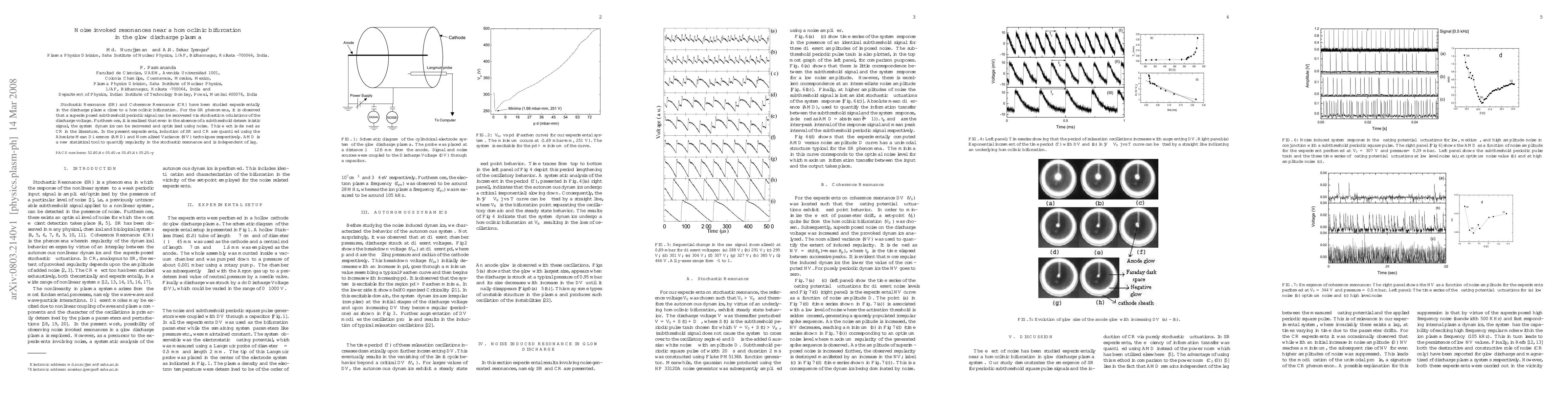 This paper investigates Stochastic Resonance (SR) and Coherence Resonance (CR) in glow discharge plasma near a homoclinic bifurcation, demonstrating that noise can enhance signal recovery even without a subthreshold signal, quantified using Absolute Mean Difference (AMD) and Normalized Variance (NV). AMD is introduced as a new statistical tool for quantifying regularity in SR.