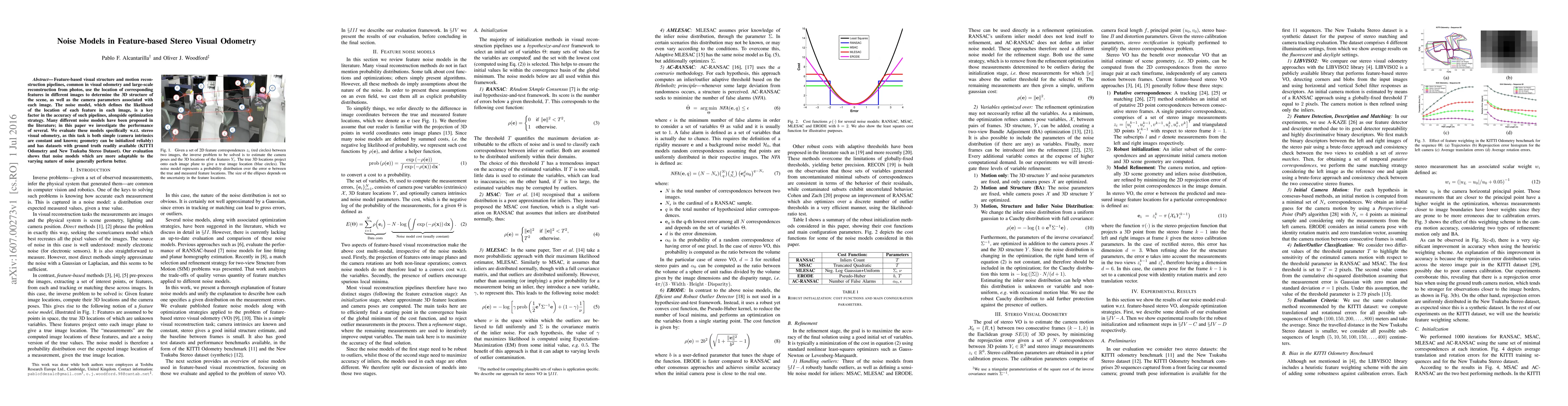 The paper presents a comprehensive evaluation of several noise models in the context of feature-based stereo visual odometry, highlighting the importance of adaptability in noise models.