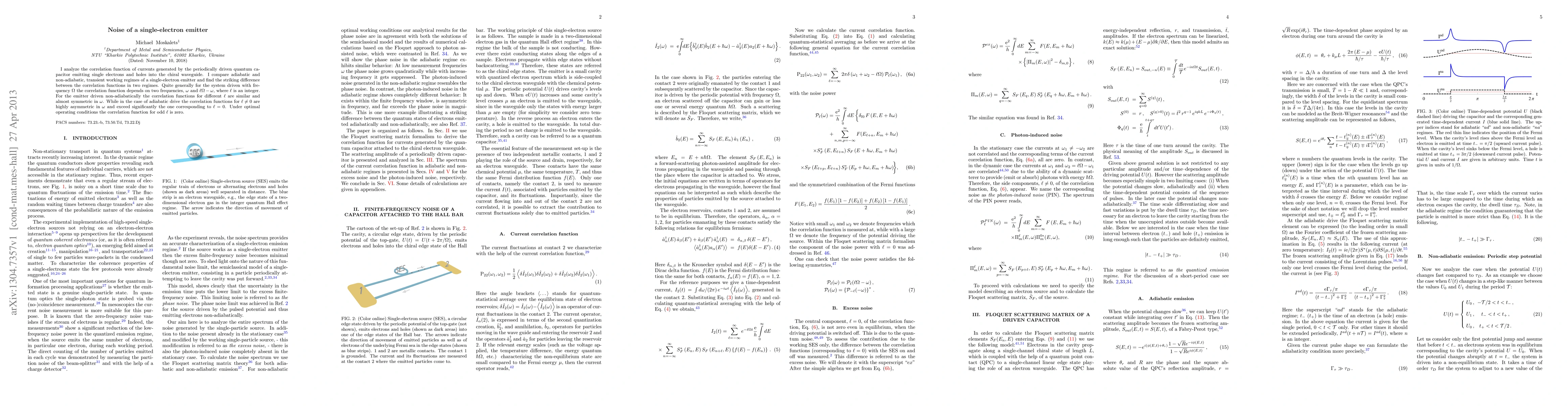 Researchers analyzed the correlation function of a single-electron emitter driven at different frequencies, finding striking differences between adiabatic and non-adiabatic regimes.
