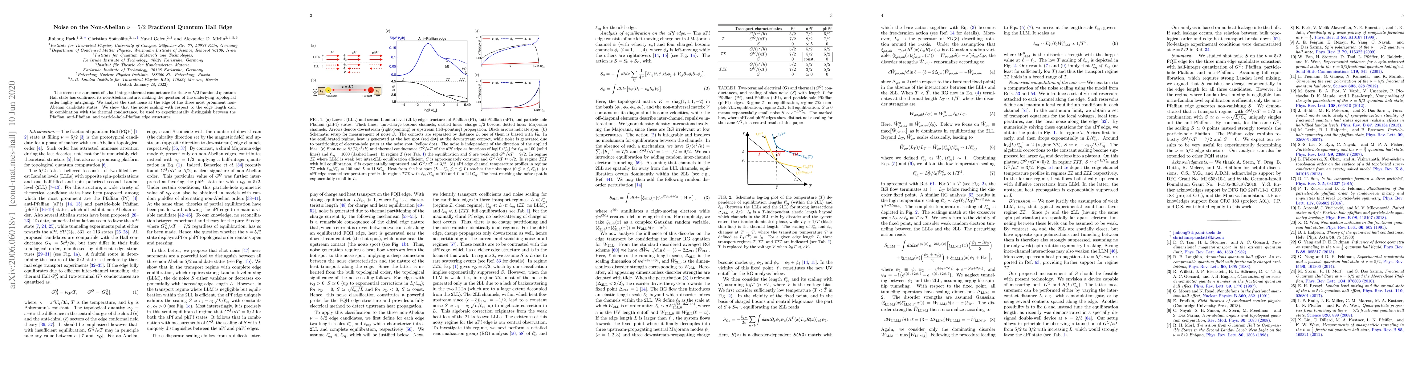 This paper investigates shot noise characteristics at the edge of the non-Abelian $\nu=5/2$ fractional quantum Hall state, revealing that noise scaling can distinguish between the Pfaffian, anti-Pfaffian, and particle-hole-Pfaffian edge structures, alongside thermal conductance measurements.