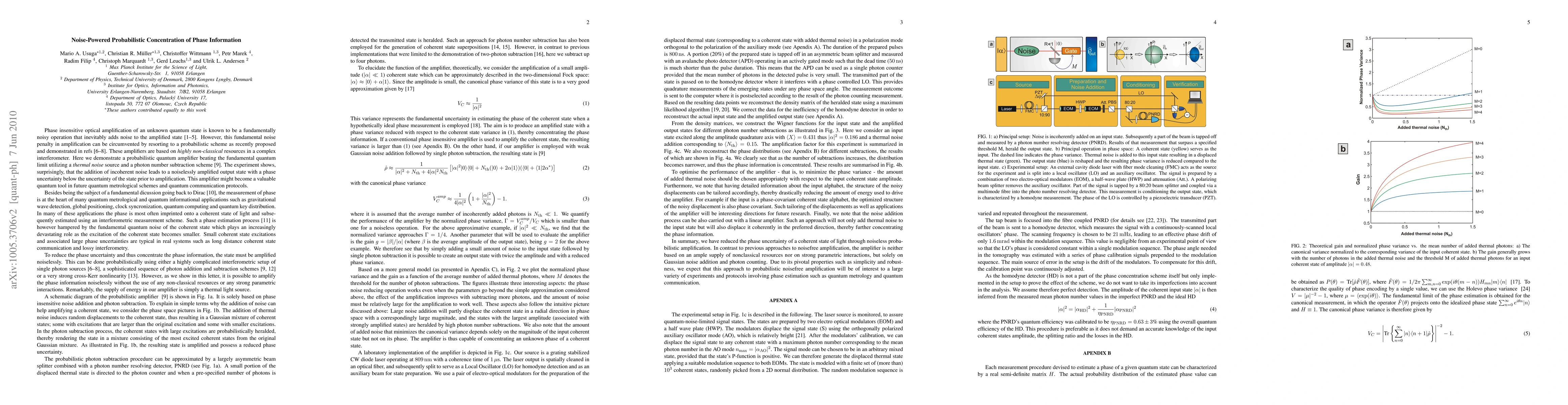 This paper demonstrates a probabilistic quantum amplifier that uses thermal noise to achieve phase information concentration below the original state's uncertainty, defying fundamental noise limits. The method employs a photon number subtraction scheme, suggesting potential applications in quantum metrology and communication.