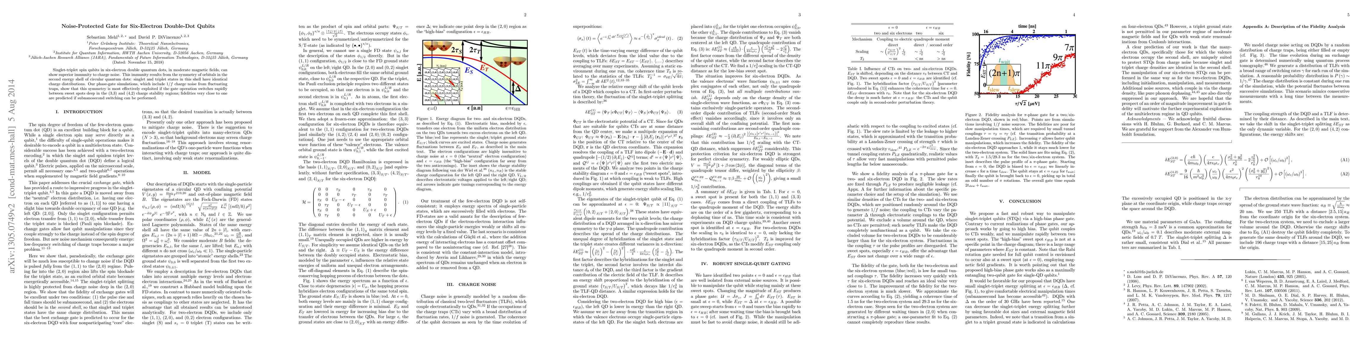 Singlet-triplet spin qubits in six-electron double quantum dots, in moderate magnetic fields, can show superior immunity to charge noise. This immunity results from the symmetry of orbitals in the second energy shell of circular quantum dots: singlet and triplet states in this shell have identical charge distributions. Our phase-gate simulations, which include $1/f$ charge noise from fluctuating traps, show that this symmetry is most effectively exploited if the gate operation switches rapidly between sweet spots deep in the (3,3) and (4,2) charge stability regions; fidelities very close to one are predicted if subnanosecond switching can be performed.