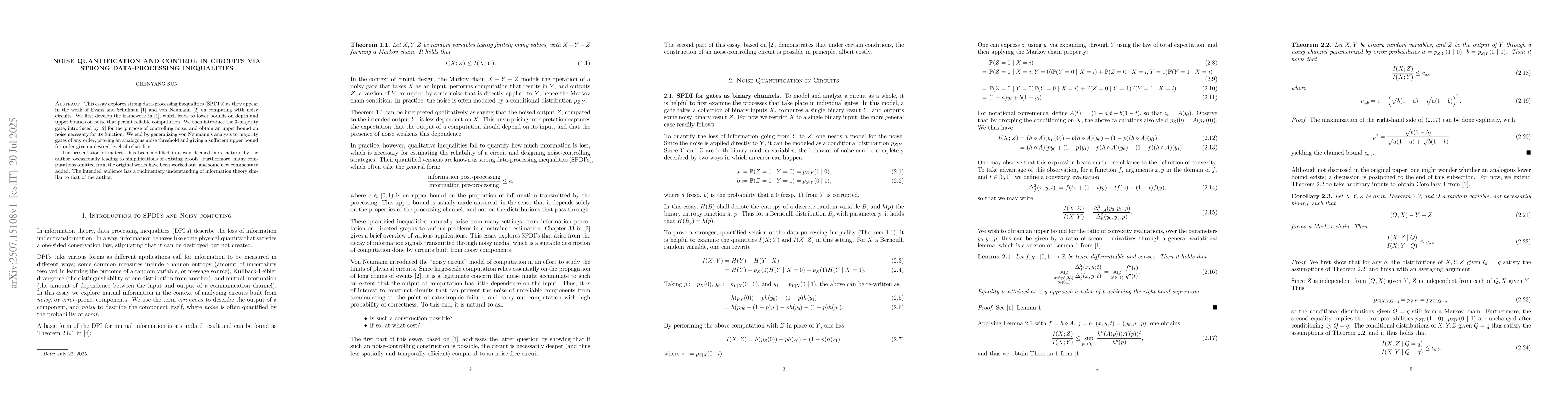 This essay explores strong data-processing inequalities (SPDI's) as they appear in the work of Evans and Schulman \cite{ES} and von Neumann \cite{vN} on computing with noisy circuits. We first develop the framework in \cite{ES}, which leads to lower bounds on depth and upper bounds on noise that permit reliable computation. We then introduce the $3$-majority gate, introduced by \cite{vN} for the purpose of controlling noise, and obtain an upper bound on noise necessary for its function. We end by generalizing von Neumann's analysis to majority gates of any order, proving an analogous noise threshold and giving a sufficient upper bound for order given a desired level of reliability. The presentation of material has been modified in a way deemed more natural by the author, occasionally leading to simplifications of existing proofs. Furthermore, many computations omitted from the original works have been worked out, and some new commentary added. The intended audience has a rudimentary understanding of information theory similar to that of the author.