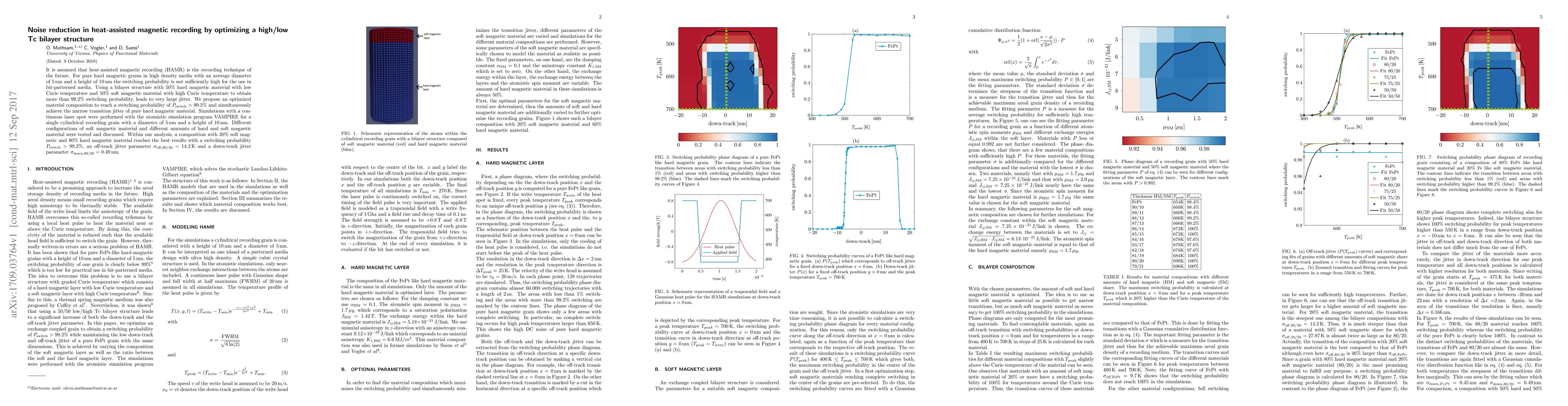 This paper proposes optimizing a bilayer structure in heat-assisted magnetic recording (HAMR) to achieve high switching probabilities and reduced jitter. An 80% hard magnetic/20% soft magnetic composition achieves a switching probability >99.2% and reduced jitter parameters, improving the reliability of future high-density magnetic storage.