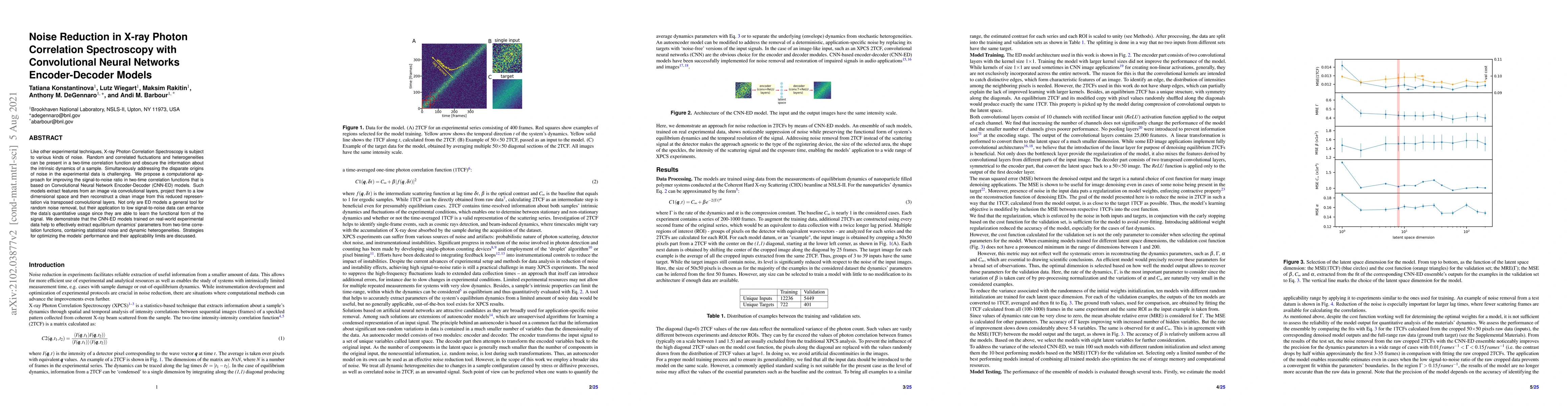 This paper proposes using Convolutional Neural Network Encoder-Decoder (CNN-ED) models to reduce noise in X-ray Photon Correlation Spectroscopy data, enhancing the signal-to-noise ratio and enabling better extraction of equilibrium dynamics parameters. The models effectively learn the signal's functional form and optimize performance strategies for real-world applications.