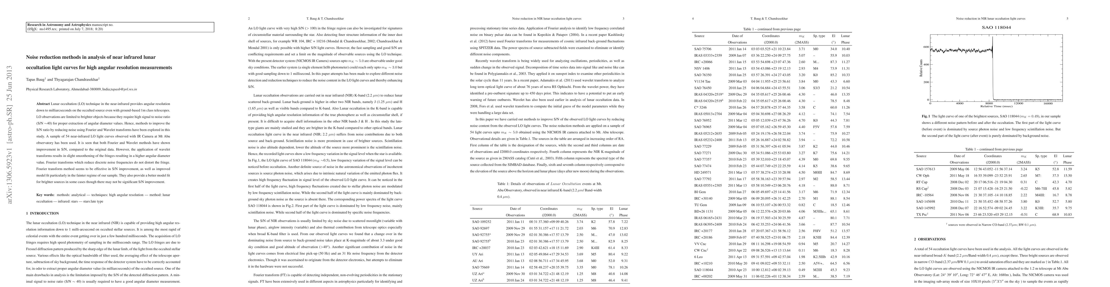 This study explores noise reduction methods for analyzing near-infrared lunar occultation light curves, showing that Fourier transforms improve signal-to-noise ratio without distorting fringes, while Wavelet transforms can slightly smoothen fringes but provide better model fits for brighter sources.