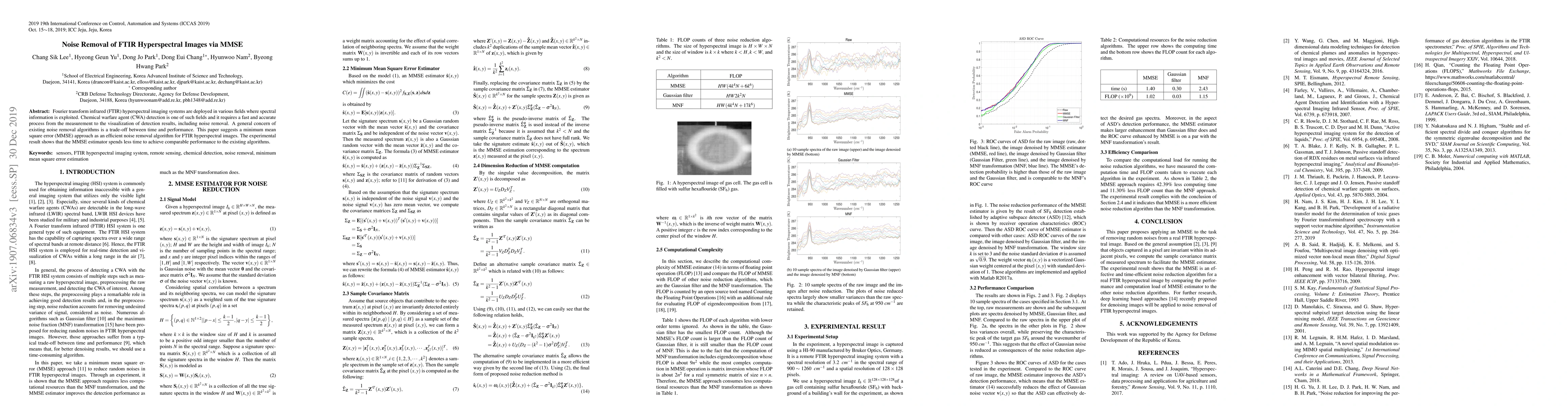 This paper proposes a minimum mean square error (MMSE) approach for noise removal in FTIR hyperspectral images, aiming to balance efficiency and performance. Experimental results demonstrate that the MMSE estimator achieves comparable accuracy to existing methods while significantly reducing processing time.