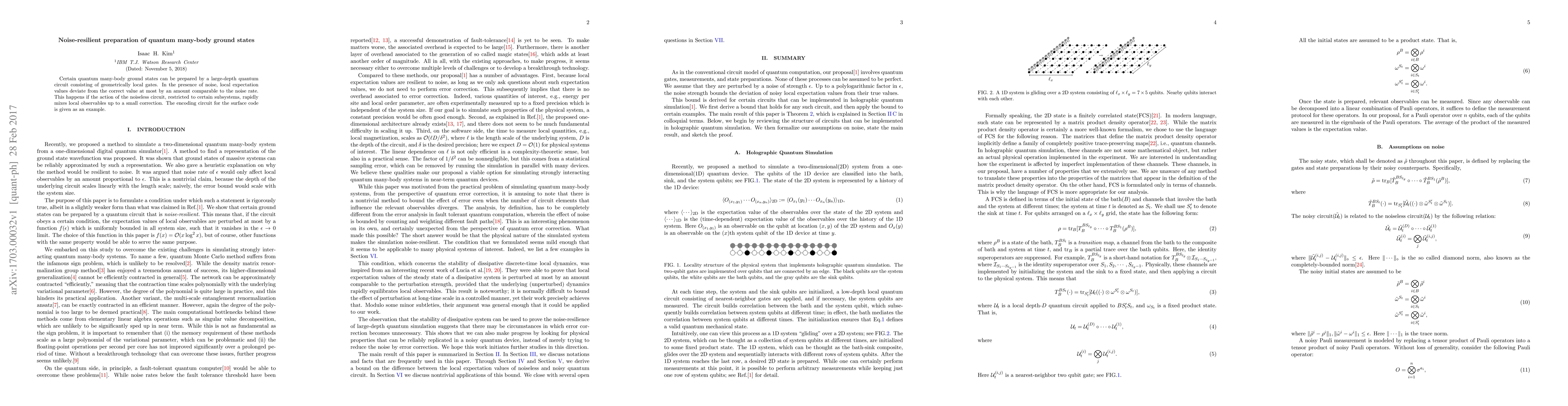 Researchers found that certain quantum many-body ground states can be prepared with high accuracy despite noise, using a specific type of quantum circuit known as the surface code.