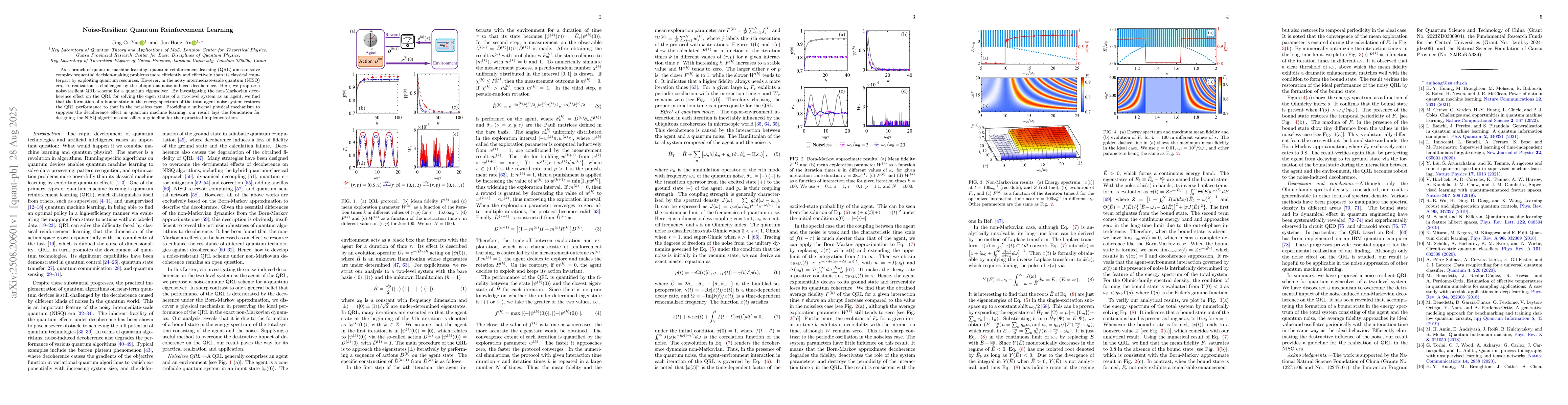 As a branch of quantum machine learning, quantum reinforcement learning (QRL) aims to solve complex sequential decision-making problems more efficiently and effectively than its classical counterpart by exploiting quantum resources. However, in the noisy intermediate-scale quantum (NISQ) era, its realization is challenged by the ubiquitous noise-induced decoherence. Here, we propose a noise-resilient QRL scheme for a quantum eigensolver. By investigating the non-Markovian decoherence effect on the QRL for solving the eigen states of a two-level system as an agent, we find that the formation of a bound state in the energy spectrum of the total agent-noise system restores the QRL performance to that in the noiseless case. Providing a universal physical mechanism to suppress the decoherence effect in quantum machine learning, our result lays the foundation for designing the NISQ algorithms and offers a guideline for their practical implementation.