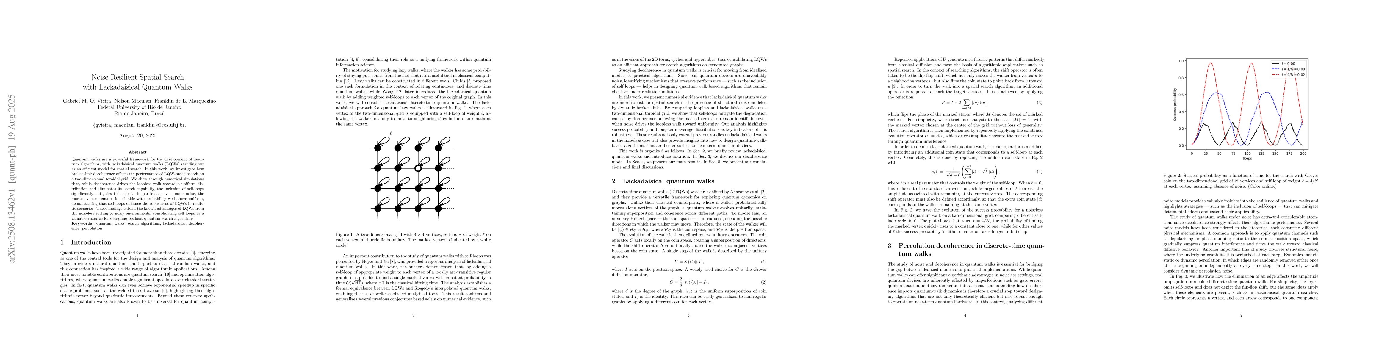 The study establishes that self-loops not only optimize lackadaisical quantum walks in the ideal case but also play a crucial role in making quantum search algorithms more resilient to realistic sources of noise.