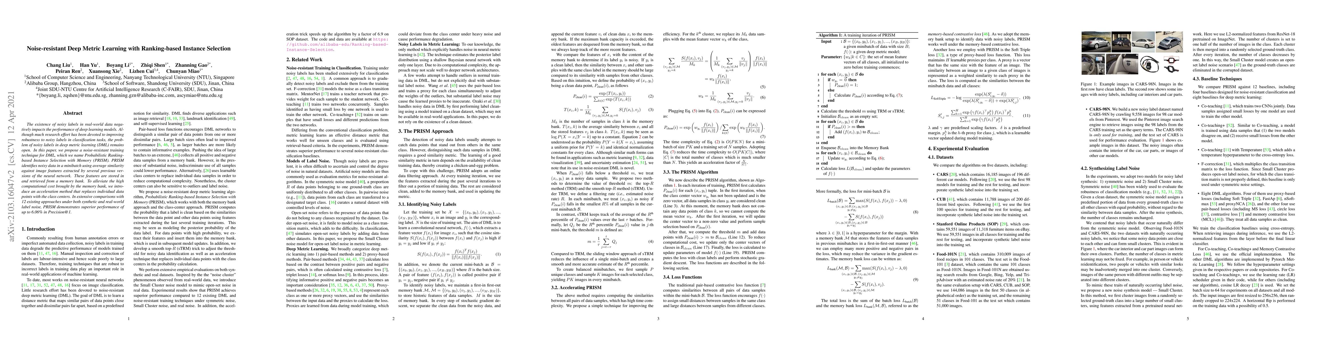 A new method called Probabilistic Ranking-based Instance Selection with Memory (PRISM) is proposed to improve the performance of deep metric learning models in the presence of noisy labels. PRISM achieves superior results with up to 6.06% improvement in Precision@1 compared to existing approaches.