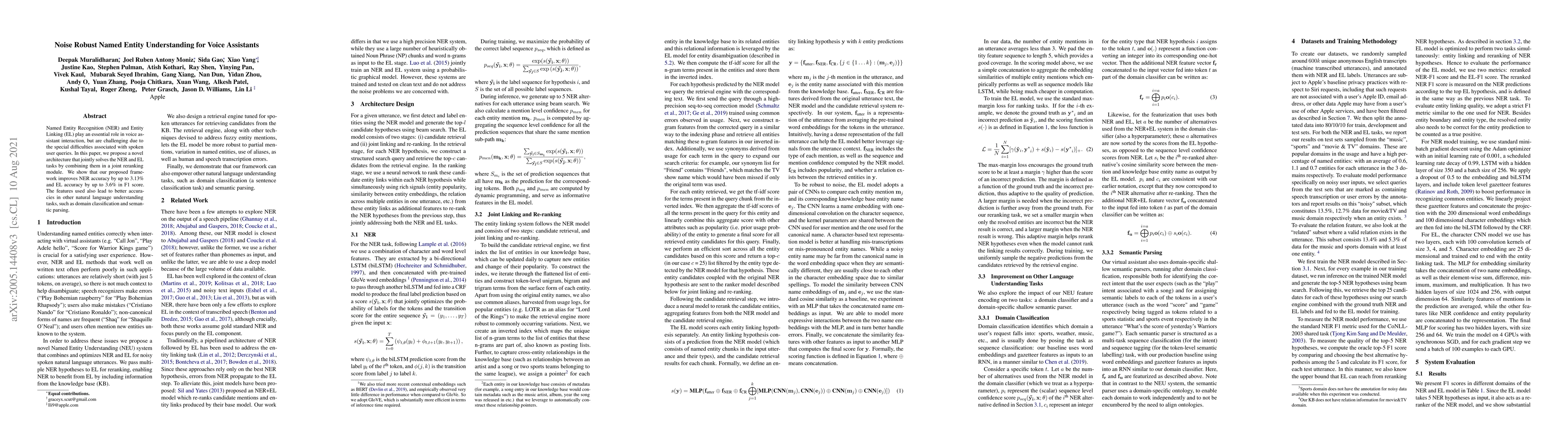 This research introduces a new architecture that simultaneously tackles Named Entity Recognition (NER) and Entity Linking (EL) for voice assistants, enhancing accuracy by up to 3.13% for NER and 3.6% for EL. The model's features also improve performance in other NLU tasks.