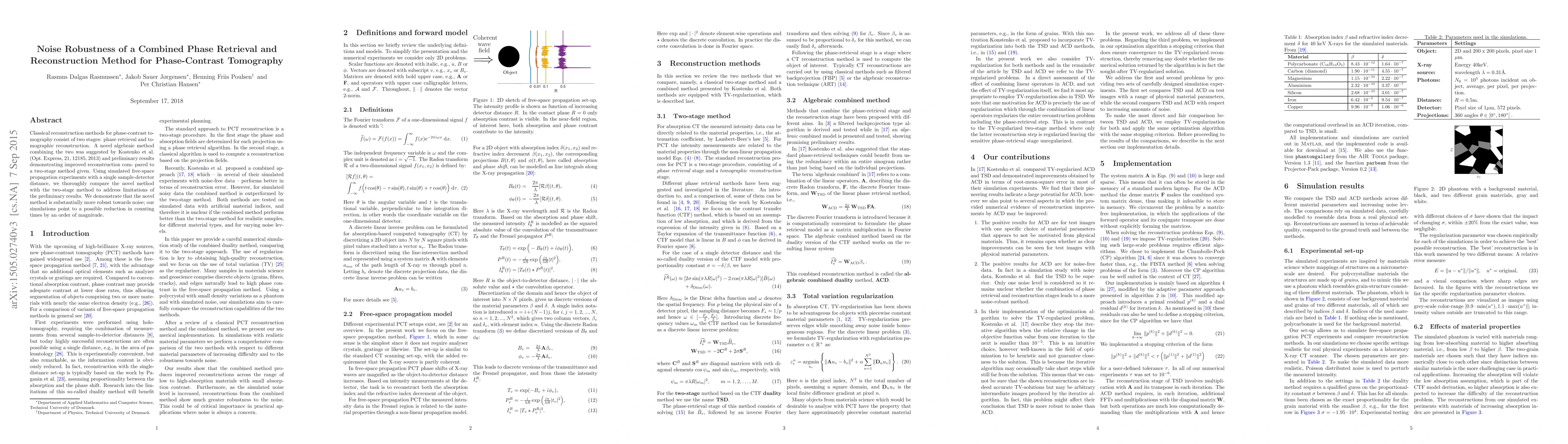 This paper evaluates a combined phase retrieval and reconstruction method for phase-contrast tomography, showing that it is significantly more robust to noise compared to traditional two-stage methods. The novel approach may allow for a reduction in counting times by an order of magnitude.