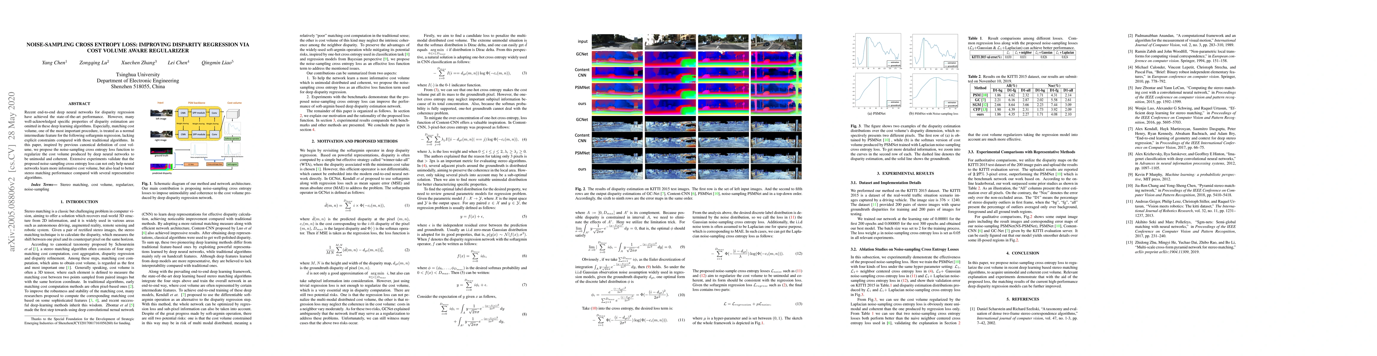 Recent end-to-end deep neural networks for disparity regression have achieved the state-of-the-art performance. However, many well-acknowledged specific properties of disparity estimation are omitted in these deep learning algorithms. Especially, matching cost volume, one of the most important procedure, is treated as a normal intermediate feature for the following softargmin regression, lacking explicit constraints compared with those traditional algorithms. In this paper, inspired by previous canonical definition of cost volume, we propose the noise-sampling cross entropy loss function to regularize the cost volume produced by deep neural networks to be unimodal and coherent. Extensive experiments validate that the proposed noise-sampling cross entropy loss can not only help neural networks learn more informative cost volume, but also lead to better stereo matching performance compared with several representative algorithms.