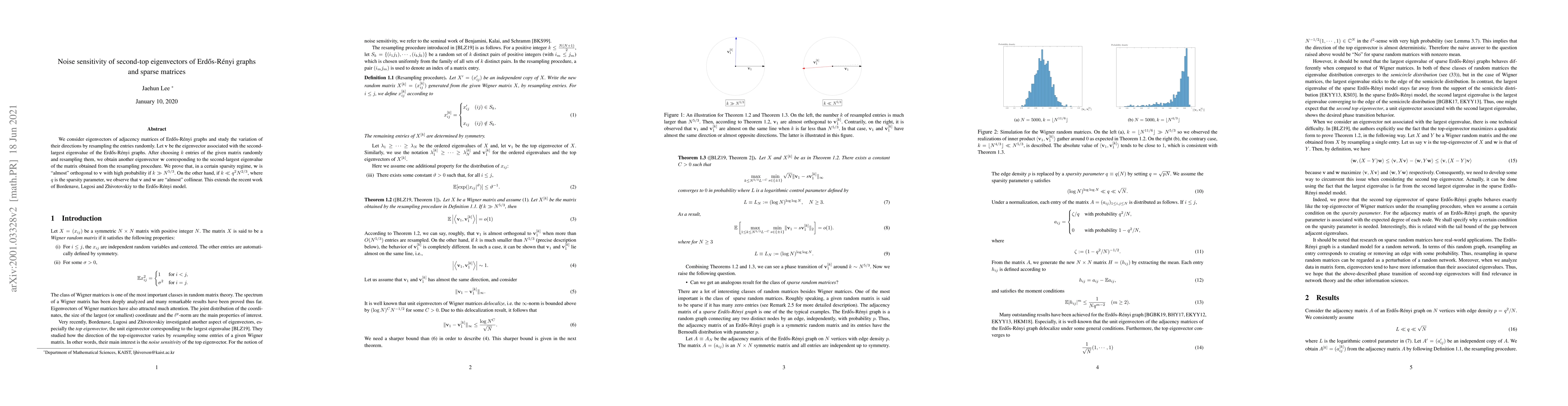 This paper investigates the noise sensitivity of the second-largest eigenvectors in adjacency matrices of Erdős-Rényi graphs by resampling matrix entries. It finds that eigenvectors diverge significantly with high probability when resampling a large fraction of entries, while they remain similar when resampling a small fraction, extending prior results to sparse matrices.