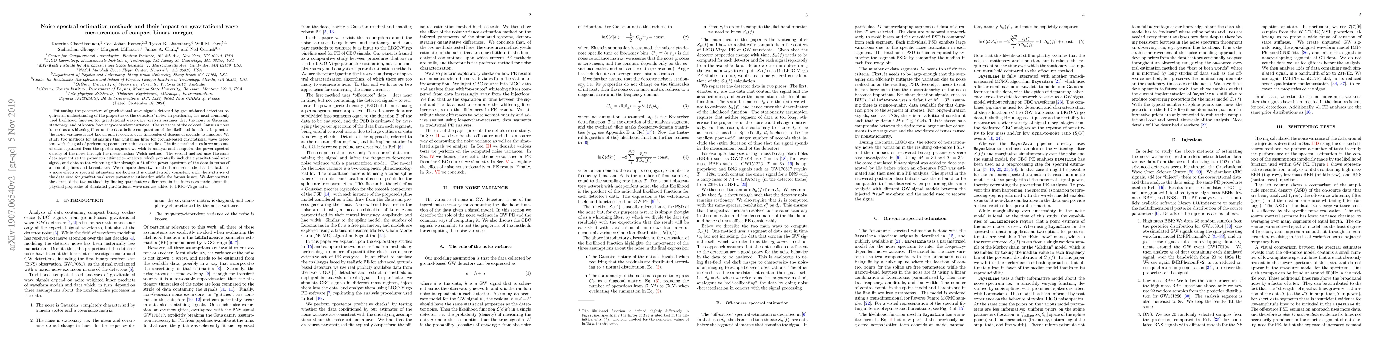 This paper compares two noise spectral estimation methods for gravitational wave detection, focusing on their impact on parameter estimation for compact binary mergers. The first method uses separate data to compute noise power spectral density, while the second fits the noise spectrum directly within the analysis segment, arguing for the latter's reliability in parameter estimation.